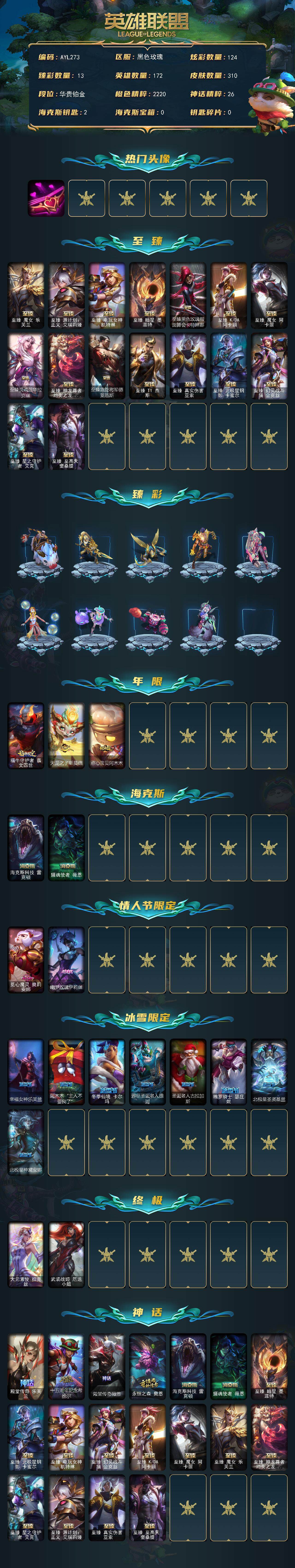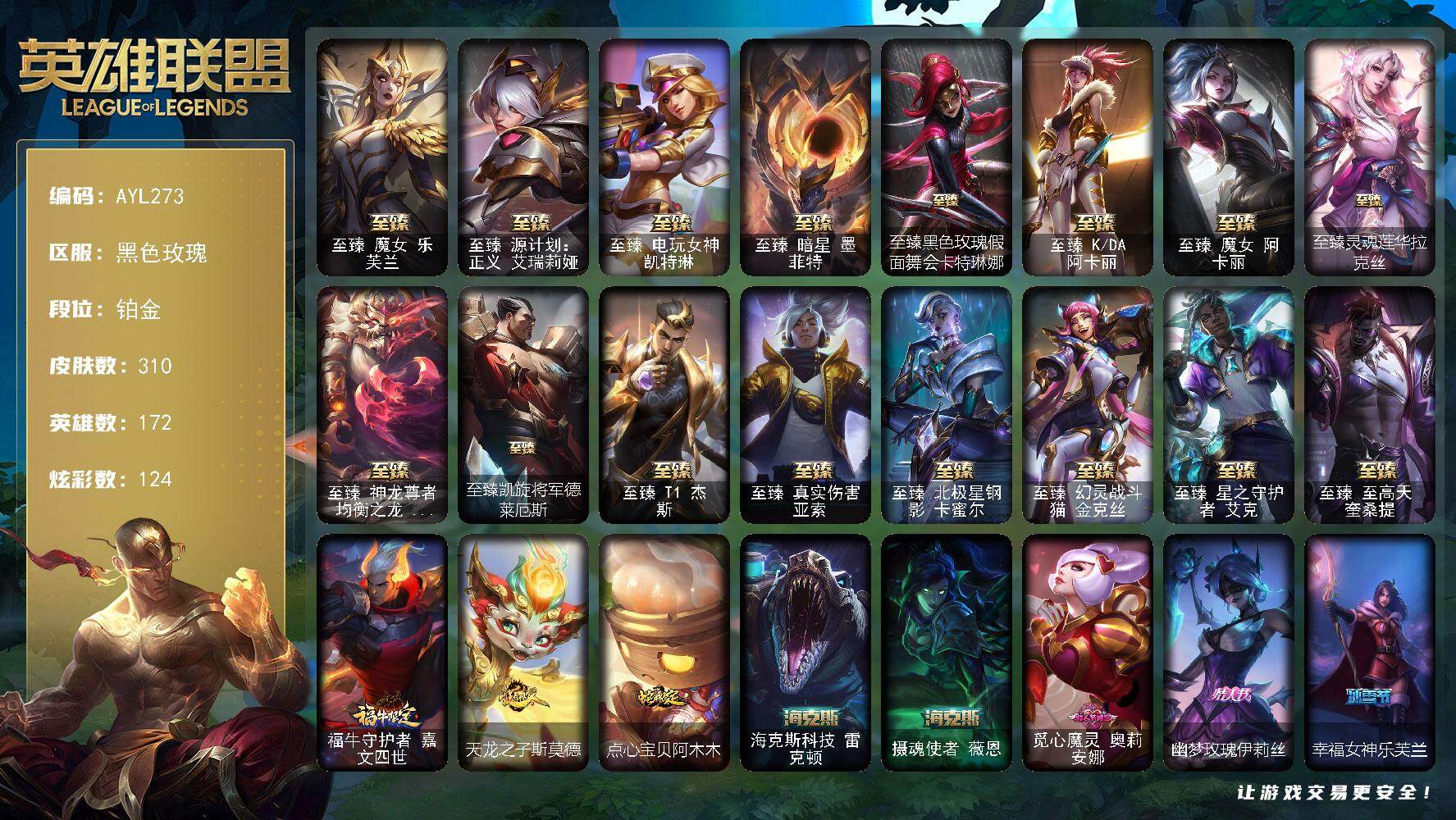 [15229235]【店主推荐捡漏号】铂金段位-172英雄-310皮肤-124炫彩-2终极-22神话-52限定-45传说-49史诗