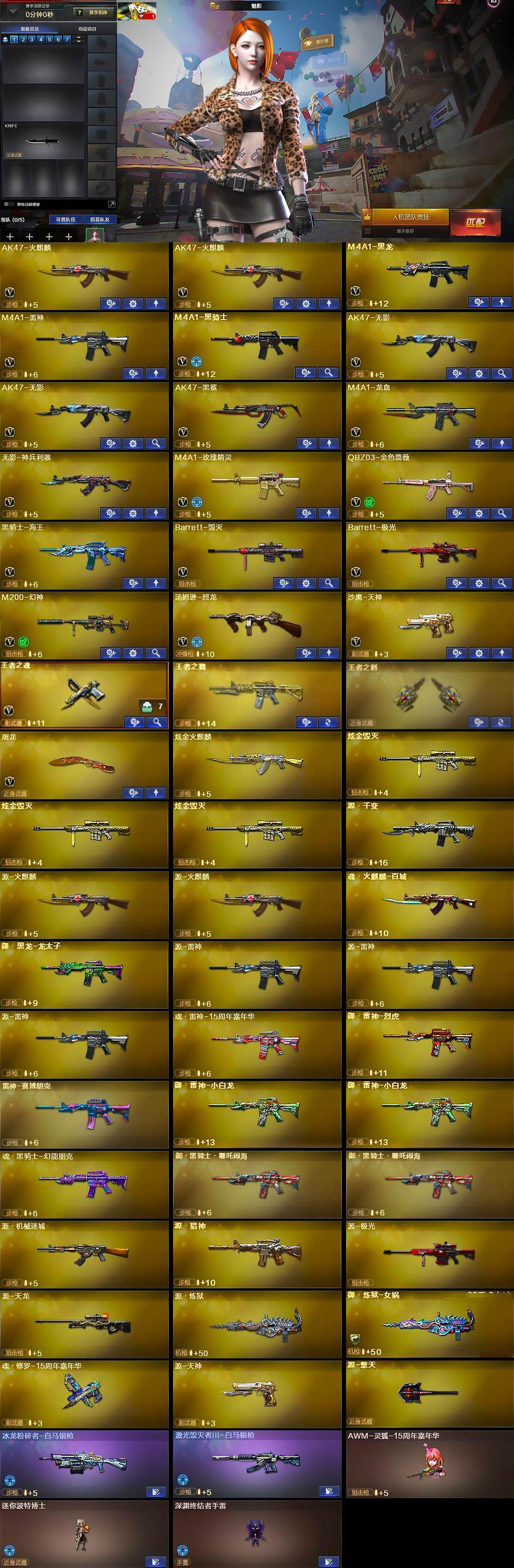 - [15182401]安徽一区-34V-9王者-1炫金 【传说武器】:传说光耀 【热门武器】:传说光耀,QBZ03-金色蔷薇,Scar Light-白虎,HK417-朱雀,M200-幻神,柯尔特-冠军之特,荣耀世冠-柯尔特,汤姆逊-烈龙,沙鹰-修罗*2,Knife-冠军之刃 【王者炫金武器】:炫金骑士 【音效卡】:Barrett-毁灭音效卡 【皮肤】:幻神-周瑜皮肤,QBZ03-冠军之薇,雷神-荣耀之魄,雷神-维纳斯皮肤,火麒麟-冠军之心,火麒麟-华夏之心,火麒麟-心动糖果,毁灭-荣耀之怒,毁灭-英雄计划 皮肤,黑龙-能量核心,修罗-能量核心,屠龙-荣耀之锋 【角色】:战地猎狐,王者-魅影,王者潘多拉,奇洋探员,芳心审判者,嘉年华灵狐,兰-海滩派对,猎狐者-追月,零-水下丽影,潘多拉-X,青霞仙子,斯沃特-X,蜀雪,职业选手 【人偶武器】:M37-葵 【暴走生化】:超级对讲机 【英雄级武器】:AK47-火麒麟,M4A1-黑龙,M4A1-雷神,HK417-朱雀,Scar Light-白虎,无影-神兵利器,黑武士-锦绣游龙,超新星-热带奇洋,QBZ03-金色蔷薇,王者之心-觉醒版,王者之势-觉醒版,AWM-天龙,Barrett-毁灭,M200-幻神,王者星神-觉醒版,汤姆逊-烈龙,AA-12-雷霆,沙鹰-修罗*2,柯尔特-冠军之特,荣耀世冠-柯尔特,屠龙*2,幻灵之锋,龙啸-热带奇洋,斩神刀-雷暴,高爆手雷-雷暴,高爆手雷-夜魔,高爆手雷-幻灵,手雷-热带奇洋,闪光弹-雷暴,闪光弹-夜魔,闪光弹-幻灵,闪光弹-雷霆王者-觉醒版*2,烟雾弹-雷暴,烟雾弹-夜魔,烟雾弹-幻灵,烟雾弹-雷霆王者-觉醒版,烟雾弹-荣耀世冠EP,M4A1-赤狱骑士 【道具】:CFS限定背包,EP战队炫彩背包,炫彩背包,热带奇洋炫彩背包,超级背包,哔哩哔哩名片,女皇终结者-魔龙之吻,救世主-黑桃战神,绿色巨人,灵魂忍者,迷雾幽灵,生化弹匣,夺命之镰,防化服*2,金色流光-枪王排位*2,星辰流光-枪王排位,巅峰赛先锋-金色流光,枪王排位28赛季金色流光,枪王排位29赛季金色流光,热带奇洋表情,EP战队击杀图标,C4-黑曜,C4-沙漠,C4-再燃火线,防弹头盔*2,防弹衣*2,C4工具钳*2,手雷包*2 【特殊枪械】:1白虎,1烈龙