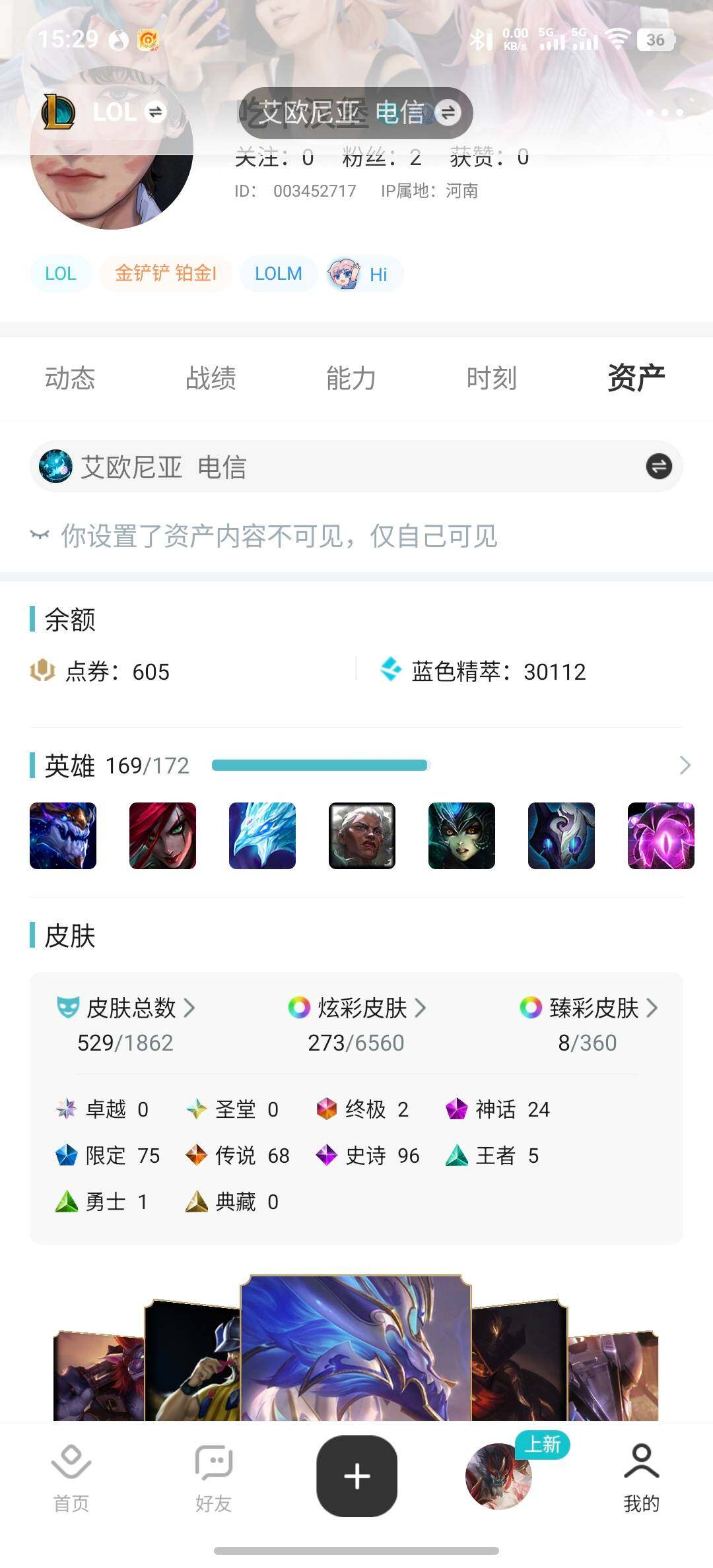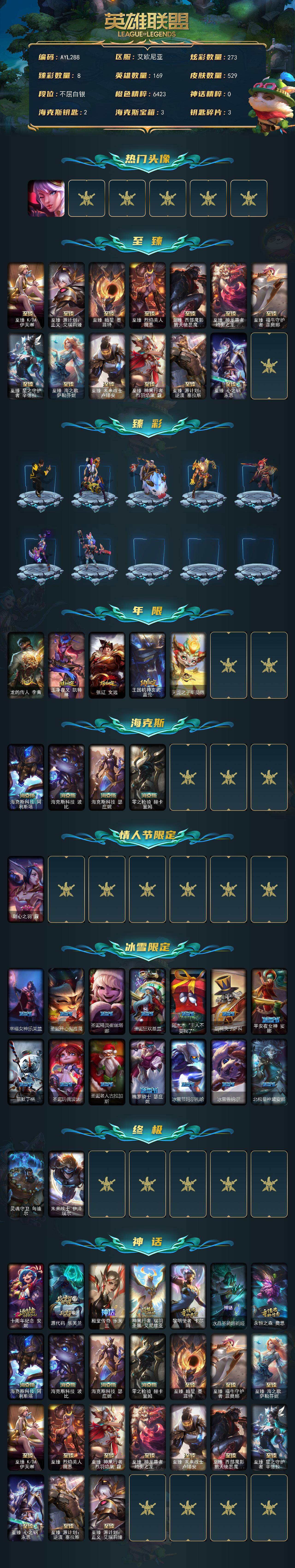 [15233000]可二次【店主推荐捡漏号!可直接换绑】白银段位-169英雄-529皮肤-273炫彩-2终极-24神话-75限定-68传说-96史诗