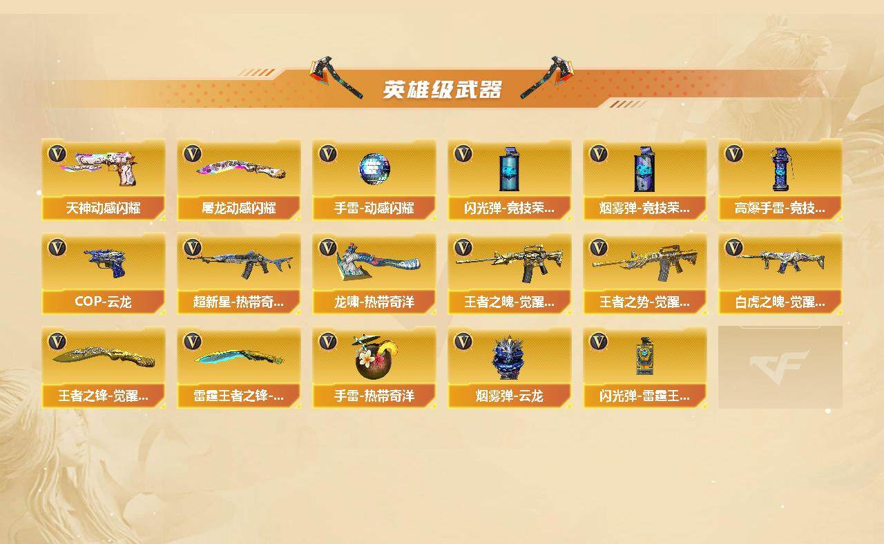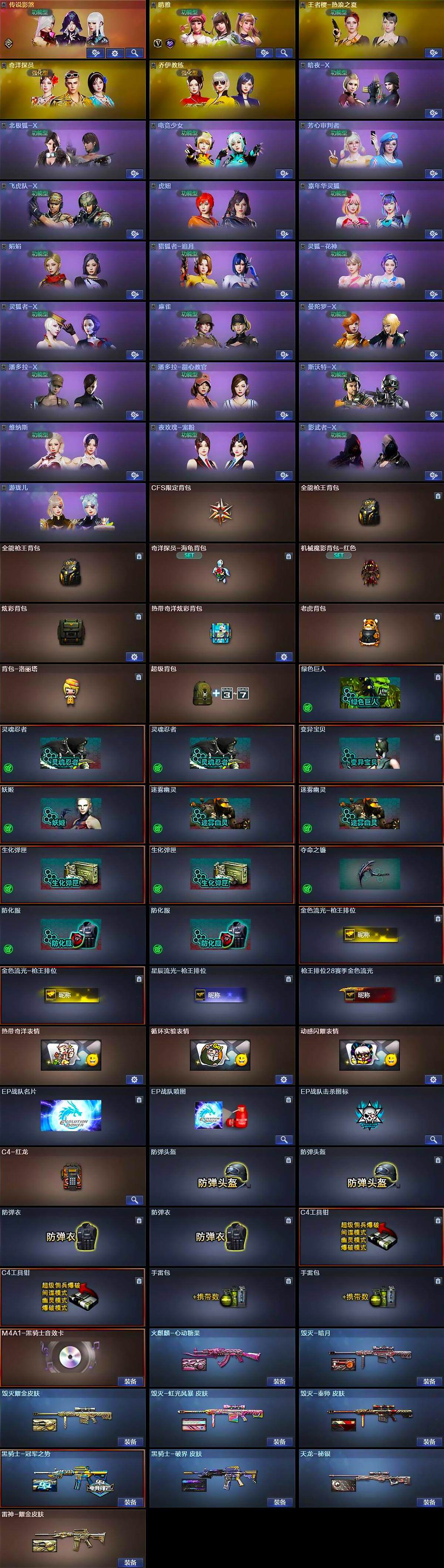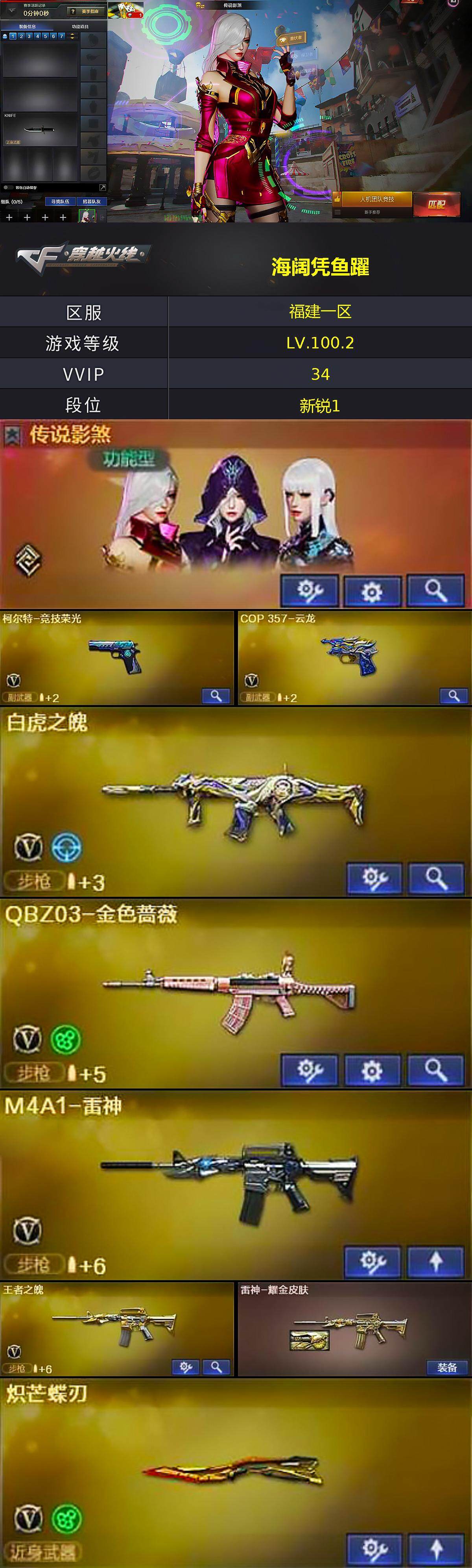 - [15239870]浙江一区-38V-1王者-0炫金 【热门武器】:柯尔特-荣耀世冠白鲨2023,M200-竞技荣光,M4A1-黑骑士,加特林-炼狱,裁决-雪莉杨,COP-白鲨,USP-雷暴,炽芒蝶刃-荣耀世冠白鲨2023 皮肤 【音效卡】:M4A1-黑骑士音效卡 【皮肤】:火麒麟-雷神,战神-流金岁月皮肤,炽芒蝶刃-荣耀世冠白鲨2023 皮肤 【角色】:雨棠,电竞教官-云悠悠,初恋灵狐,娟娟,麻雀,潘多拉-X,潘多拉-甜心教官,铁骑荣耀 【人偶武器】:COP-白鲨,裁决-雪莉杨,迷你裂空之翼,迷你波特博士,夺魂,深渊终结者手雷,M4A1-斯沃特,迷你艾比 【暴走生化】:超级对讲机 【挑战大师】:神圣爆裂者III,冰龙粉碎者-白马银枪*2,激光毁灭者III-白马银枪,VEPR-12-金魔,激光毁灭者III,机甲撕裂者III 【英雄级武器】:AK47-火麒麟,M4A1-雷神,M4A1-黑骑士,王者白虎-觉醒版,M200-竞技荣光,加特林-炼狱,USP-雷暴,柯尔特-荣耀世冠白鲨2023,柯尔特-竞技荣光,擎天-竞技荣光,高爆手雷-竞技荣光*8,闪光弹-竞技荣光*10,烟雾弹-竞技荣光*9 【道具】:机械魔影背包-红色,超级背包,夺命之镰,防化服,枪王排位28赛季金色流光,枪王排位29赛季金色流光,防弹头盔*4,防弹衣*4,C4工具钳*4,手雷包*4 【特殊枪械】:1黑骑士,1炼狱
