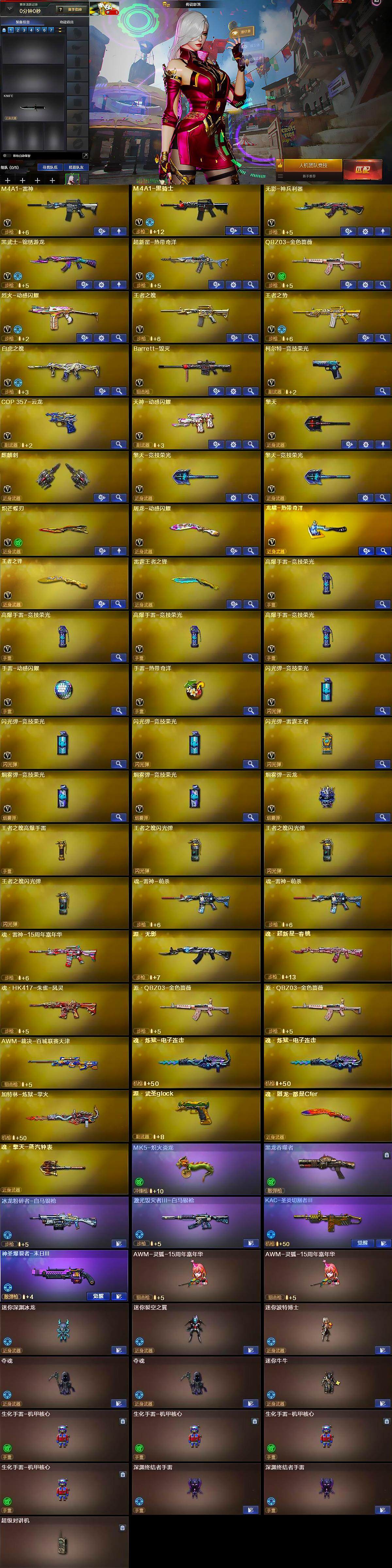 - [11934893]4粉装 11特效枪 15印记 可二次 可修改实名 身法装备:Mark.06(新蓝螳螂) 优质装备:MG3洛神天依,香水柠檬,洛天依,七级MG3-洛神天依,M416电玩时刻,UMP45量子极限,P90-金丰海韵,七级P90-金丰海韵,M762-青锋波束,千金淑猫,GROZA-镜光银凌,AUG-暖羊咩咩,AUG-圣斗士星矢,七级AUG-圣斗士星矢,MK14-甜梦熊击,罗征,Kar98K-巳巳如意 稀有枪皮:DP-28-豹影疾电 五级特效枪:五级M762-青锋波束,五级UMP45-量子极限,五级GROZA-镜光银凌,五级Kar98K-巳巳如意,五级DP-28-豹影疾电,五级MK14-甜梦熊击,五级AUG-暖羊咩咩,五级M416-电玩时刻 紫色装扮:田园牧歌,轻风白浪,SS22特训,SS23特训,娇憨猪猪,萌趣咩咩,SS21特训,绚烂繁星,SS31特训套装,人气偶像,军械专家,旭日情侣,SS30特训套装,云朵鹅,彩虹兔,雪绒豹,SS33特训套装,青涩时光,顶瓜瓜,SS20特训,SS15特训,SS16特训,SS13特训,SS14特训,萌趣颜团子,SS19特训,吉莉礼服,电音精灵,天籁歌者,瑞龙福将,团圆交子,SS17特训,SS18特训,酒红色名流,野性战心,长空猛禽,霓虹街区,缤纷果语,蓝色守护者,蓝色运动,虎虎生威吉莉,超能勇士,蓝海鲸歌,骑行爱好者,魅力单车,黄色名流,黎明保卫者,黑色伏地魔,龙的传人,龟仙人,冰河战士,龙魂突击队,蝶变,香桃花海,极速红龙,柠萌假日,橘黑制服,沙漠兵团,海岛探路者,深蓝色名流,滨海假日,坚韧舞者,夏日音浪,幻世战舞者,战地督导,探宝勇士,湖蓝色名流,滨海厨神,绮丽涂鸦,白色伏地魔,破蛋小黄鸡,福星高照,空投萌叽,王牌教练,牛气冲天,灼焰舞者,炫蓝之夏,热血青春,牛气满满,猛禽,小熊娃娃,雏菊兔兔,萝兰蝴蝶,SS29特训,狂花道·雅典娜,星途旅人,白光莹,纯真浪花,热情海星,曼妙人鱼,SS28特训,Mark.06(新蓝螳螂),冰公主,异域银装,石蕴玉辉,鱼渊荷华,玉兔迎春,燕燕于飞,巳巳如意,森林游猎者,青团波波,糖糖葫芦,棉花软糖,竞技名士,摩登魅猫,街头风暴,许七安,银尘,情公主,果汁能量,惊鸿侠骨,SS24特训(SS24特训套装),SS25特训,锦衣飞扬,SS27特训,日照花林,SS26特训,智谋强哥,大橘大利,SS12特训,SS