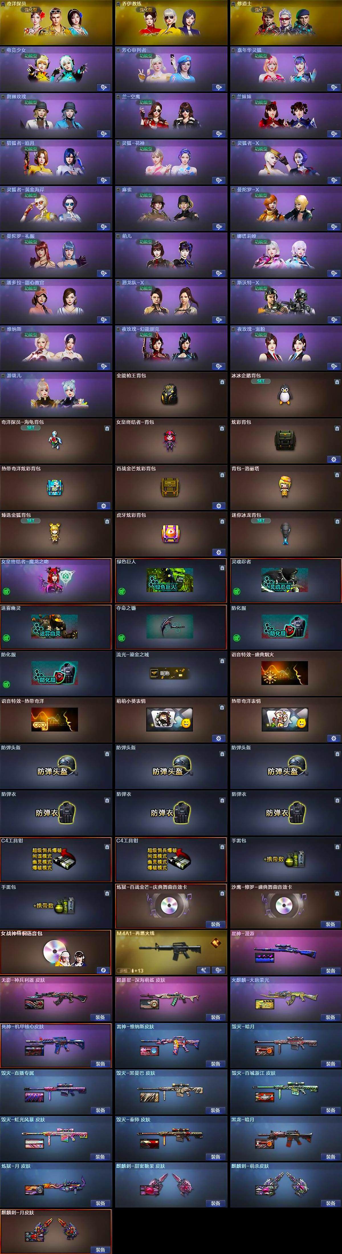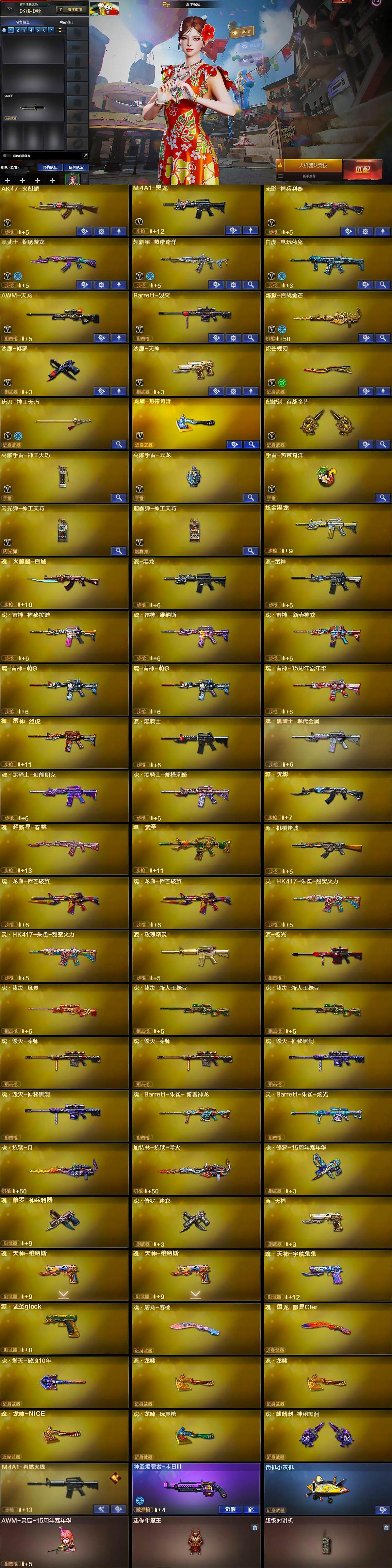 - [15248126]广西一区-61V-8王者-4炫金 【热门武器】:HK417-朱雀,M200-幻神,M4A1-黑骑士,汤姆逊-烈龙*6,RPK-盘龙,加特林-炼狱,沙鹰-修罗 【王者炫金武器】:王者之翼*2,王者之魄,王者之怒,炼狱-悦蓝*2,王者之锋,炫金骑士,炫金雷神*2,炫金毁灭 【音效卡】:AK47-火麒麟音效卡,M4A1-黑龙音效卡*2,M4A1-黑骑士音效卡,Barrett-毁灭音效卡,Barrett-极光音效卡 【皮肤】:雷神-星空,毁灭-星空,黑龙-能量核心,黑龙-暗月,黑骑士-地狱火,无影-能量核心,战神-粉色甜心皮肤,战神-紫绶金章皮肤,战神-流金岁月皮肤,极光-能量核心,修罗-能量核心,轻型军用手斧-再燃火线 【角色】:乔伊教练,修道士,暗夜-X,风暴女,兰妹妹,灵狐者-黄金海岸,龙儿,潘多拉-甜心教官,潜龙队-X,青霞仙子,蜀雪,铁骑荣耀,雪莉杨,影武者-X 【人偶武器】:M4A1-雷神-精英刀锋,闪光弹-小乔 【挑战大师】:激光毁灭者III 【英雄级武器】:M4A1-千变,AK47-火麒麟*2,M4A1-黑龙*3,M4A1-雷神,M4A1-黑骑士,AK47-无影*2,AK47-黑武士*3,AK12-天启*5,AK47-黑鲨*2,HK417-朱雀,AK-47-猩红传说,AK47-B-战神,AWM-天龙,Barrett-毁灭*3,Barrett-极光,AWM-裁决*3,M200-幻神,RPK-盘龙,加特林-炼狱,汤姆逊-烈龙*6,沙鹰-修罗,沙鹰-天神,破空枪刃-夜魔,屠龙*3,马来剑-夜魔,擎天*2,王者之击-觉醒版,高爆手雷-夜魔*2,闪光弹-夜魔*2,烟雾弹-夜魔*2 【道具】:CFS限定背包,云山科技背包,超级背包,救世主-黑桃战神,绿色巨人,灵魂忍者,迷雾幽灵,生化弹匣,夺命之镰,防化服*3,防弹头盔*6,防弹衣*6,C4工具钳*4,手雷包*5 【特殊枪械】:1黑骑士,6烈龙,1盘龙,1炼狱