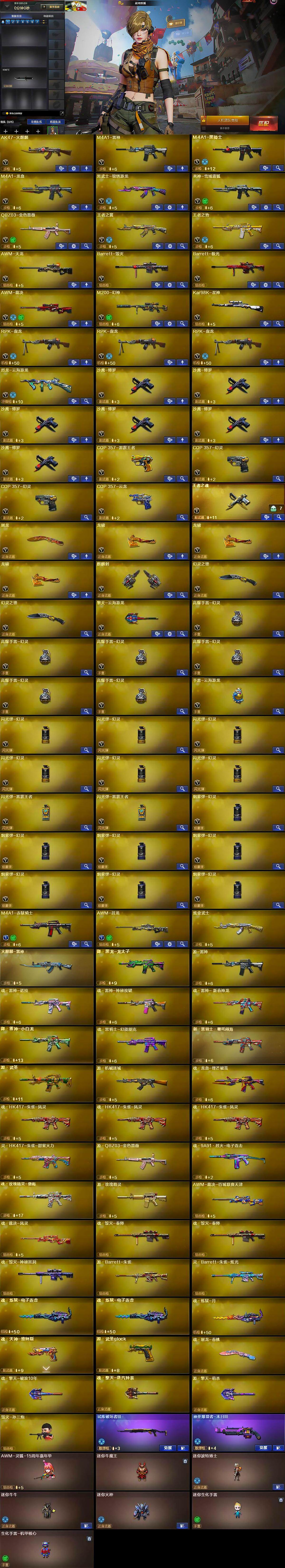 【热门武器】:QBZ03-金色蔷薇,M200-幻神,Kar98K-星神,M4A1-黑骑士,RPK-盘龙*3,毁灭-孙三炮,COP 357-幻灵*2,沙鹰-修罗*6