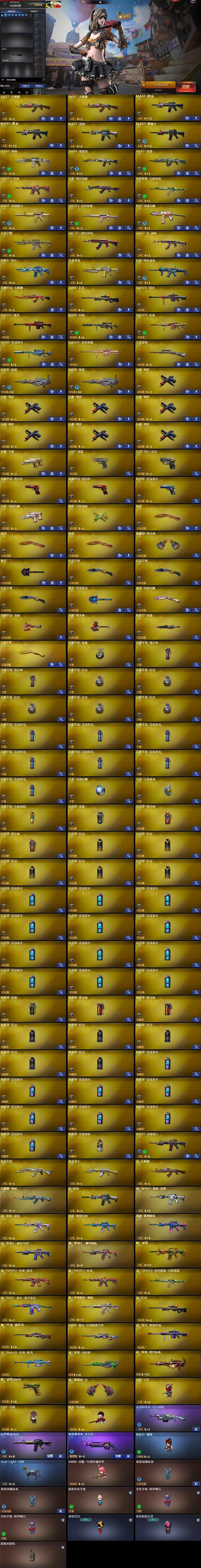 - [15612445]110125k哈伏币-209m流动资产-60烽火等级-钻石-11战场等级-列兵 【干员外观】:骇爪-维什戴尔,深蓝-不破誓约,红狼-电锯惊魂 【近战皮肤】:近战-黑鹰 【传说外观】:M4A1突击步枪-阿米娅,ASh-12战斗步枪-鹅鸭杀,SG552突击步枪-运动员,SCAR-H战斗步枪-启航,KC17突击步枪-电锯惊魂,QCQ171冲锋枪-鹅鸭杀,M250通用机枪-骑士之心,QJB201轻机枪-鹅鸭杀,R93狙击步枪-维什戴尔 【史诗外观】:ASh-12战斗步枪-无极限,AUG突击步枪-蝮蛇,G3战斗步枪-流沙送葬,AS Val突击步枪-百步穿杨,K437突击步枪-守护者,MP5冲锋枪-战术竞备,MP5冲锋枪-竞技风,勇士冲锋枪-工业狂潮,MP7冲锋枪-守护者,Mini-14射手步枪-守护者,SV-98狙击步枪-囚徒,SV-98狙击步枪-猎鳄行动,AWM狙击步枪-无极限,复合弓-守护者 【稀有外观】:M7战斗步枪-天际线,AKM突击步枪-战术演练,AKM突击步枪-肃杀,QBZ95-1突击步枪-公平竞技,ASh-12战斗步枪-繁盛,K416突击步枪-酷炫狂拽,M7战斗步枪-捣蛋鬼,SCAR-H战斗步枪-荣耀列队,SCAR-H战斗步枪-黄昏,G3战斗步枪-战术演练,G3战斗步枪-主宰,腾龙突击步枪-冰天雪地,MP5冲锋枪-哈夫克卫队,P90冲锋枪-黄昏,P90冲锋枪-捣蛋鬼,Vector冲锋枪-先锋,UZI冲锋枪-亚特兰蒂斯,SMG-45-行动开启,SMG-45冲锋枪-幻影结构,勇士冲锋枪-主宰,勇士冲锋枪-冰天雪地,S12K霰弹枪-战术演练,QJB201轻机枪-黄昏,QJB201轻机枪-哈夫克卫队,Mini-14射手步枪-荣耀列队,SKS射手步枪-弄臣,SR-25射手步枪-开拓,G18-星链科技,G18-哈夫克航天 【普通外观】:腾龙突击步枪-古铜,M4A1突击步枪-粉色涂装,M4A1突击步枪-高雅黑,M4A1突击步枪-海色,QBZ95-1突击步枪-高雅黑,QBZ95-1突击步枪-海浪,QBZ95-1突击步枪-海色,QBZ191突击步枪-三角洲力量,K416突击步枪-几何迷彩,K416突击步枪-高雅黑,M16A4突击步枪-高雅黑,AUG突击步枪-浅蓝涂装,M7战斗步枪-红色涂装,SG552突击步枪-浅蓝涂装,AK-12突击步枪-变色龙,SCAR-H战斗步枪-数码迷彩