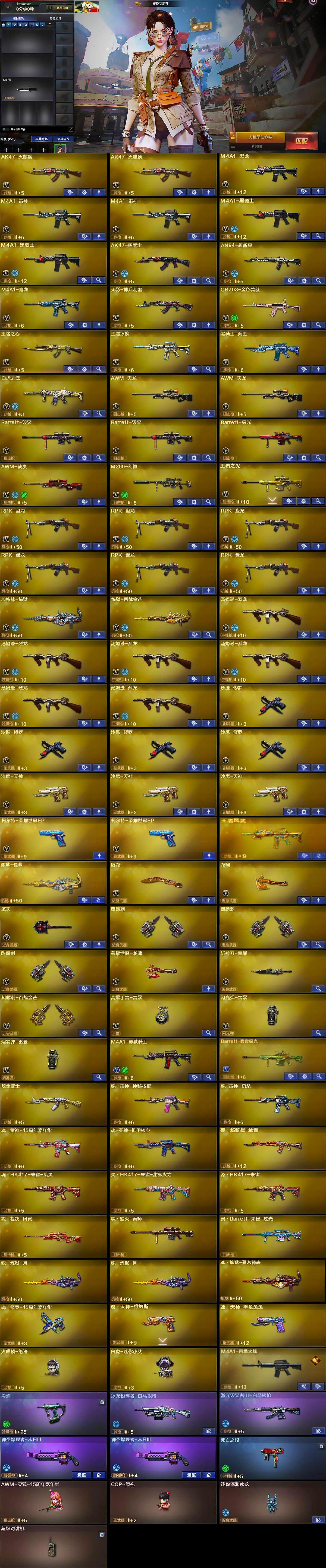 【英雄级武器】:AK47-火麒麟*2,M4A1-黑龙,M4A1-雷神*2,M4A1-黑骑士*2,AK47-黑武士,AN94-超新星,M4A1-青龙,无影-神兵利器,QBZ03-独角-V,QBZ03-金色蔷薇,王者之心-觉醒版,王者冰魄-觉醒版,黑骑士-海王,白虎之魄-觉醒版,AWM-天龙*2,Barrett-毁灭*2,Barrett-极光,AWM-裁决,M200-幻神,王者之光-