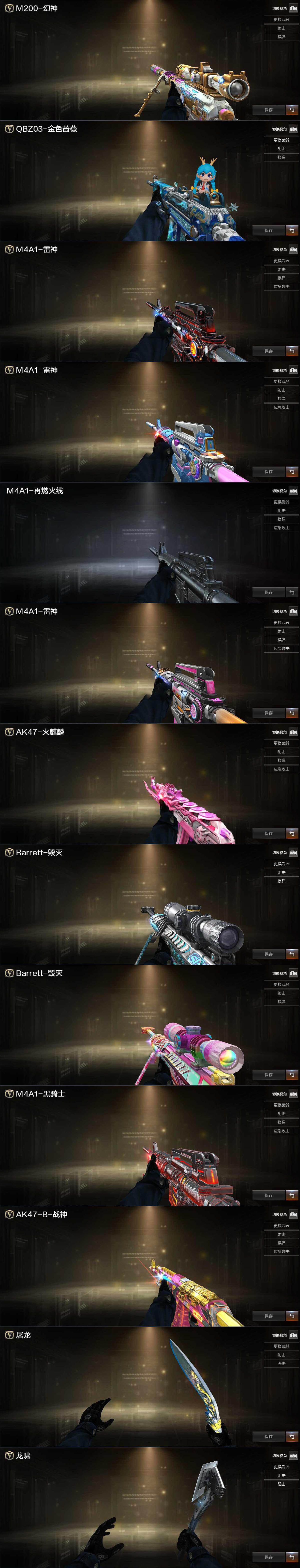 【热门武器】:QBZ03-金色蔷薇,M200-竞技荣光,M4A1-黑骑士,USP-雷暴,COP-堕天神,沙鹰-修罗