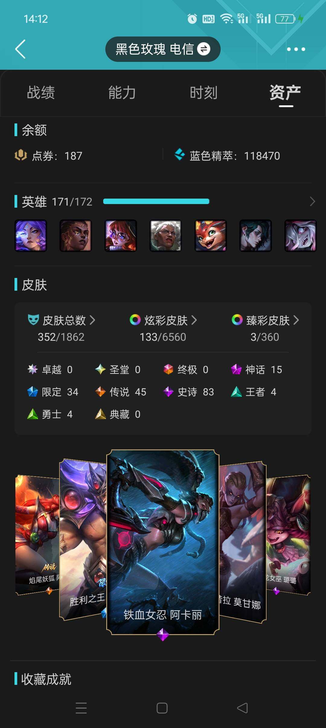 [15248428]【店主推荐捡漏号】未定级段位-171英雄-352皮肤-133炫彩-0终极-15神话-34限定-45传说-83史诗