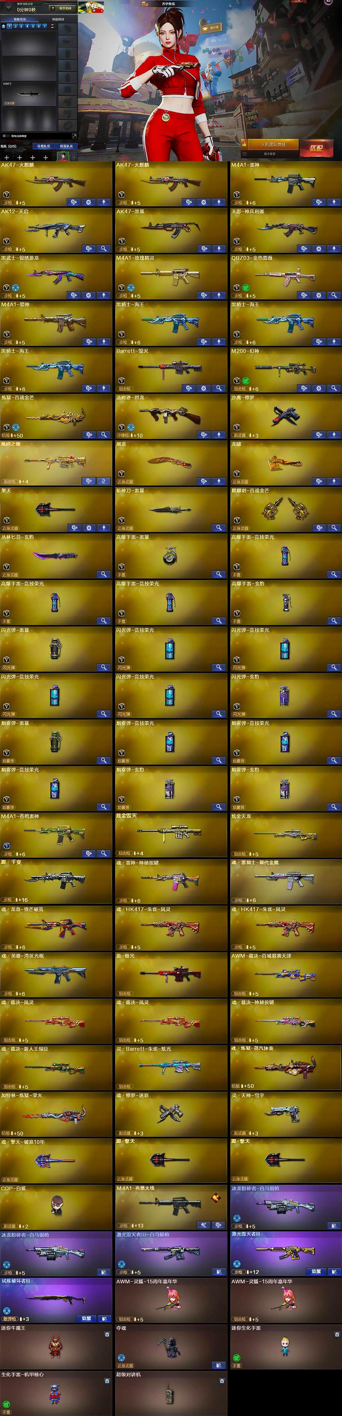 [15249536]黑龙江区-53V-1王者-2炫金 【热门武器】:QBZ03-金色蔷薇,M200-幻神,汤姆逊-烈龙,COP-白鲨,沙鹰-修罗 【王者炫金武器】:凰鸣之魄,炫金毁灭,炫金天龙 【音效卡】:Barrett-碧霄极光音效卡,炼狱-百战金芒-庆典舞曲音效卡 【皮肤】:M200-幻神-黄忠皮肤,雷神-暗月,雷神-传奇N9,雷神-维纳斯皮肤,M4A1-再燃火线,雷神-神秘按键 皮肤,火麒麟-轻羽皮肤,火麒麟-平天大圣,火麒麟-心动糖果,毁灭-暗月,毁灭耀金皮肤,毁灭-星空,毁灭-英雄计划 皮肤,黑骑士-破界 皮肤,天启-暗月,屠龙-春桃 皮肤,轻型军用手斧-再燃火线,龙啸-青青莓果 皮肤 【角色】:乔伊教练,修道士,云海玲珑,暗夜-X,初恋灵狐,芳心审判者,风暴女*2,嘉年华灵狐,娟娟,兰-海滩派对,兰妹妹,零-水下丽影,灵狐者-X,灵狐者-黄金海岸,龙儿,曼陀罗-X,潘多拉-X,潘多拉-甜心教官,邱刚敖,青霞仙子,斯沃特-X,兔囡囡,维纳斯,雪莉杨-摸金校尉,影武者-X 【人偶武器】:COP-白鲨,AWM-灵狐-15周年嘉年华*2,迷你牛魔王,夺魂,迷你生化手雷,生化手雷-机甲核心 【暴走生化】:超级对讲机 【挑战大师】:冰龙粉碎者-白马银枪*2,激光毁灭者III-白马银枪,激光毁灭者III,试炼破坏者III 【英雄级武器】:AK47-火麒麟*2,M4A1-雷神,AK12-天启,AK47-黑鲨,无影-神兵利器,黑武士-锦绣游龙,M4A1-玫瑰精灵,QBZ03-金色蔷薇,M4A1-猎神,黑骑士-海王*3,Barrett-毁灭,M200-幻神,炼狱-百战金芒,汤姆逊-烈龙,沙鹰-修罗,屠龙,龙啸,擎天,斩神刀-雷暴,麒麟刺-百战金芒,丛林匕首-玄豹,高爆手雷-雷暴,高爆手雷-竞技荣光*3,高爆手雷-玄豹,闪光弹-雷暴,闪光弹-竞技荣光*4,闪光弹-玄豹,烟雾弹-雷暴,烟雾弹-竞技荣光*3,烟雾弹-玄豹*2,M4A1-苍鸣雷神 【道具】:BS战队炫彩背包,炫彩背包,百战金芒炫彩背包,超级背包,女皇终结者-魔龙之吻,绿色巨人,灵魂忍者,妖姬,迷雾幽灵,夺命之镰,防化服*3,金色流光-枪王排位*2,星辰流光-枪王排位,枪王排位28赛季金色流光,语音特效-盛典烟火,萌萌小葵表情,EP战队名片,C4-沙漠,防弹头盔*4,防弹衣*4,C4工具钳*4,手雷包*5 【特殊枪械】:1烈龙