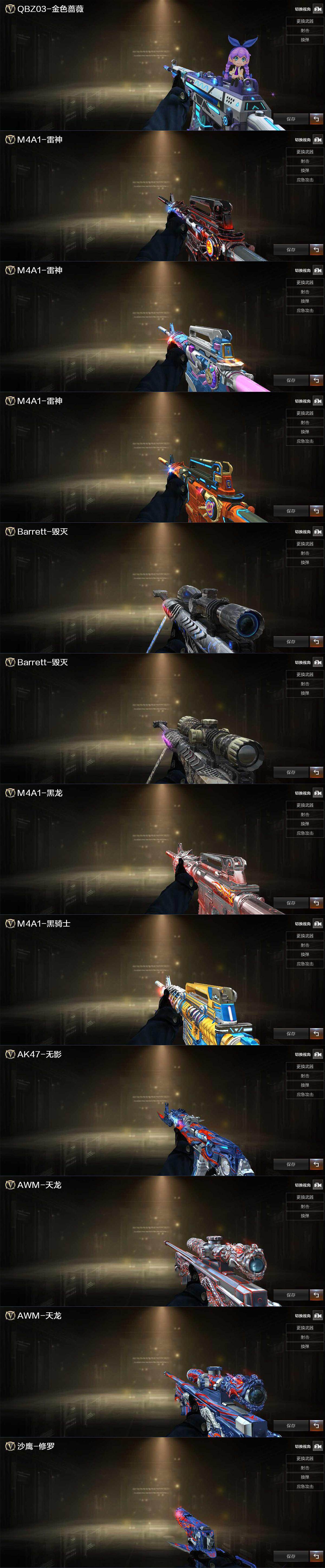 【热门武器】:QBZ03-金色蔷薇,Scar Light-白虎,死亡之眼,QBZ03-街机,M4A1-黑骑士,沙鹰-修罗*6