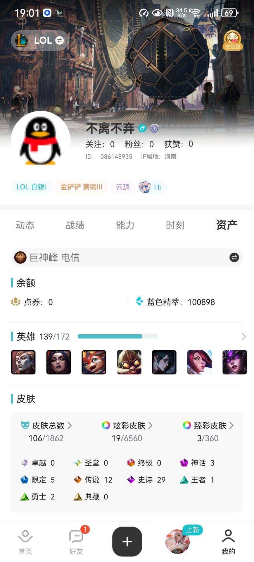 [15250030]有二次【特价出售/店主推荐】白银段位-139英雄-106皮肤-19炫彩-0终极-3神话-5限定-12传说-29史诗