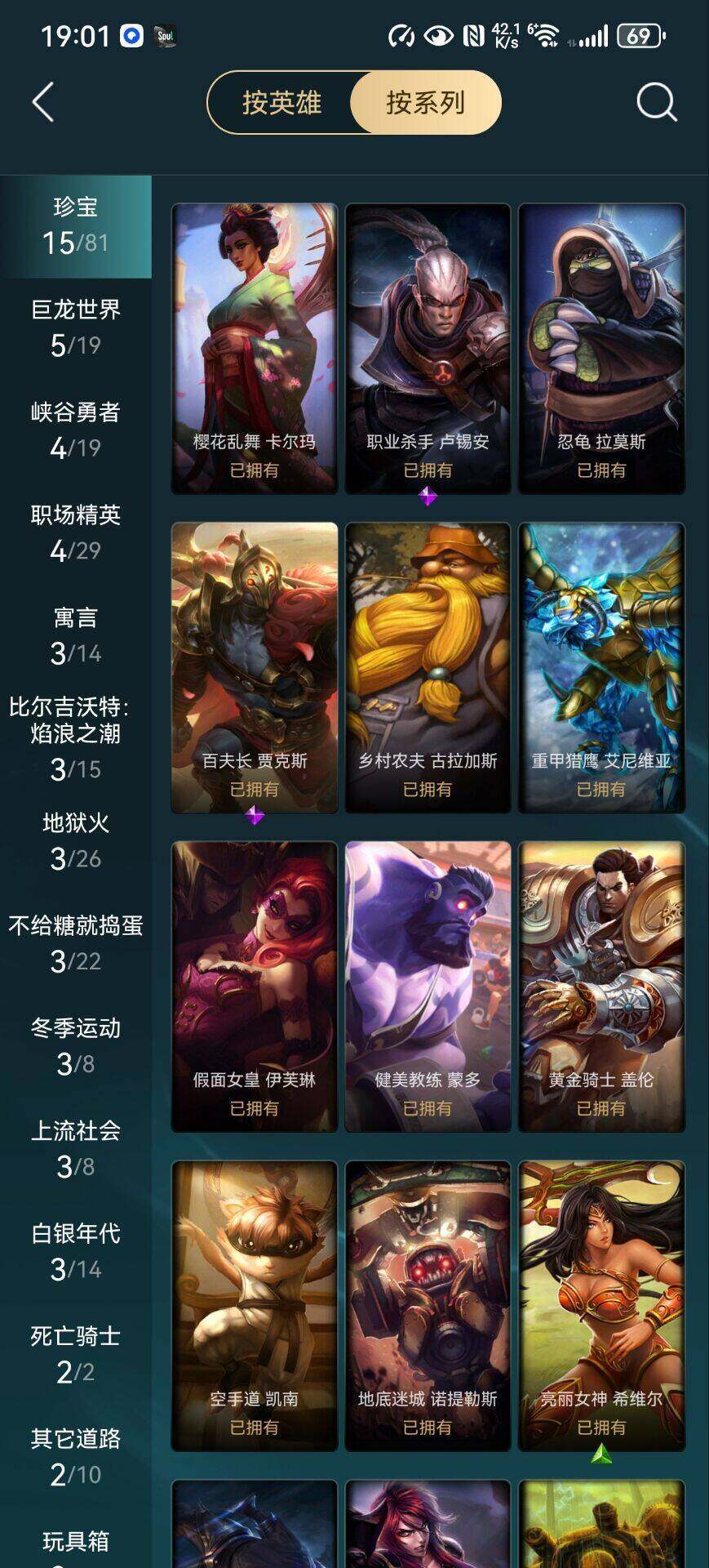 【史诗皮肤】:冰霜烈焰安妮,翼骑统领赵信,地狱火阿利斯塔,女船长厄运小姐,百夫长贾克斯,黑色荆棘莫甘娜,炼金狂士辛吉德,穿着正装的恶魔维迦,海贼魅影卡特琳娜,防弹武僧李青,屠龙勇士薇恩,苍穹之光薇恩,生化博士黑默丁格,铁血猎手奈德丽,死亡领主莫德凯撒,孤高游侠盖伦,深海怪鱼克格莫,腥红之月鬼武者慎,ODST地狱伞兵拉克丝,钢之逆鳞希瓦娜,铁血猎人雷恩加尔,白色死神韦鲁斯,驯龙女巫璐璐,铁血帝皇德莱厄斯,无限烈焰黛安娜,腥红之月黛安娜,屠龙勇士布隆,职业杀手卢锡安,炼狱魔女蔚