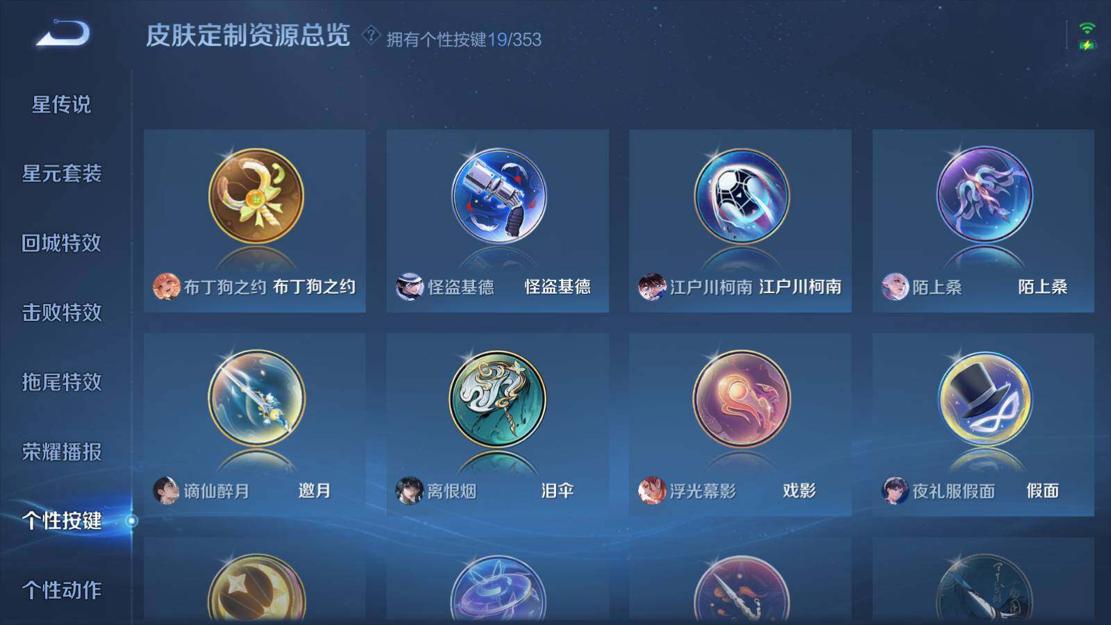 达摩黄金狮子座,曜云鹰飞将,虞姬云霓雀翎,曜李逍遥,孙策挚爱之约,孙尚香音你闪耀,狄仁杰神器·狴犴令,夏洛特浮生妄,公孙离记忆之芯,大乔时之奇旅,鲁班七号时之奇旅,王昭君永恒水手月亮,狄仁杰夜礼服假面,孙尚香乘龙·问璇玑,墨子黄金天蝎座