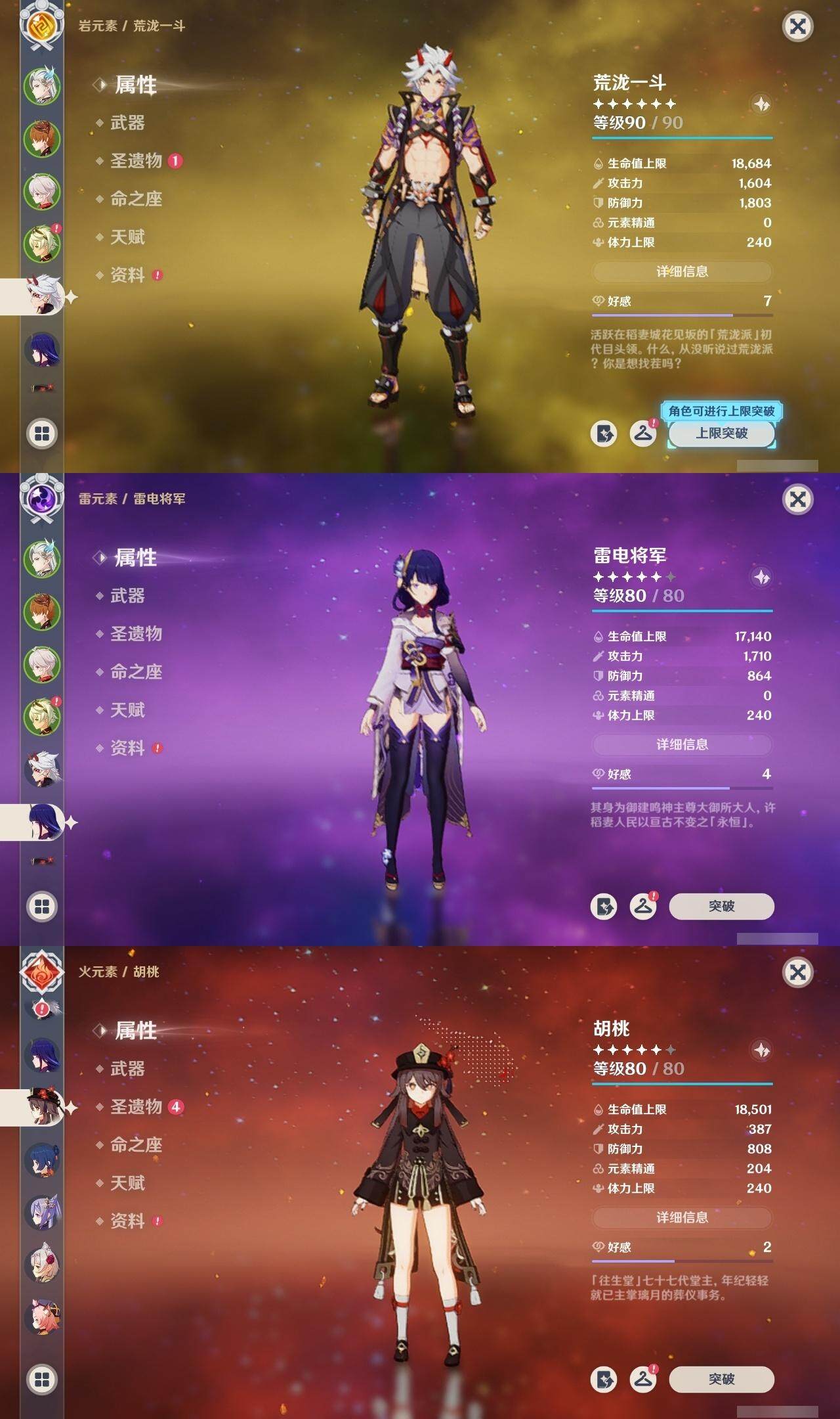 达达利亚,枫原万叶,荒泷一斗,雷电将军,胡桃,刻晴,温迪,七七,琴,莫娜