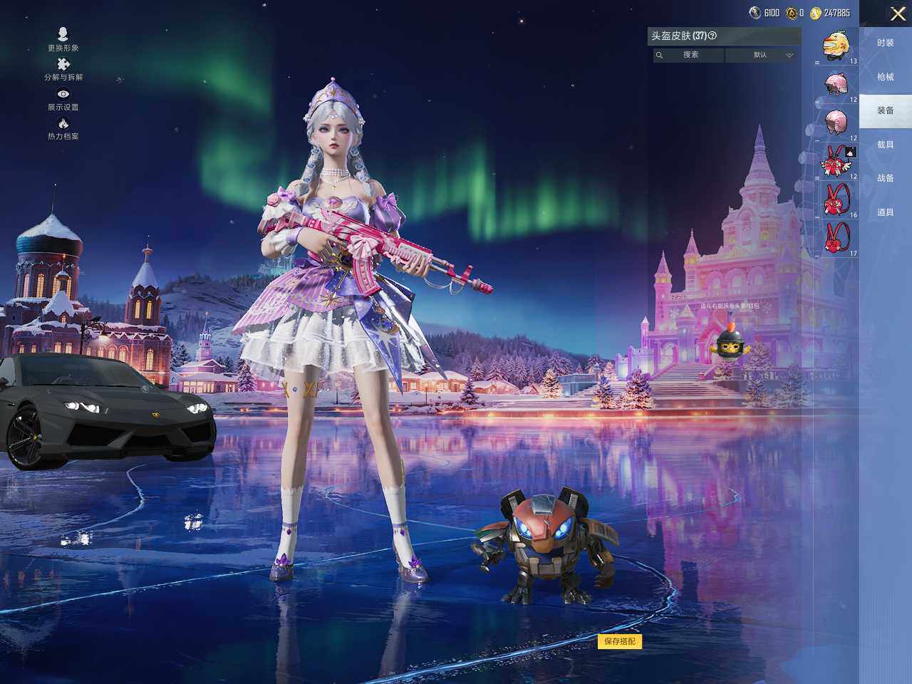 【粉色枪皮】:AKM-星际浪客,SCAR-L-梦幻火箭,M416-风花雪月,M762-甜蜜誓约