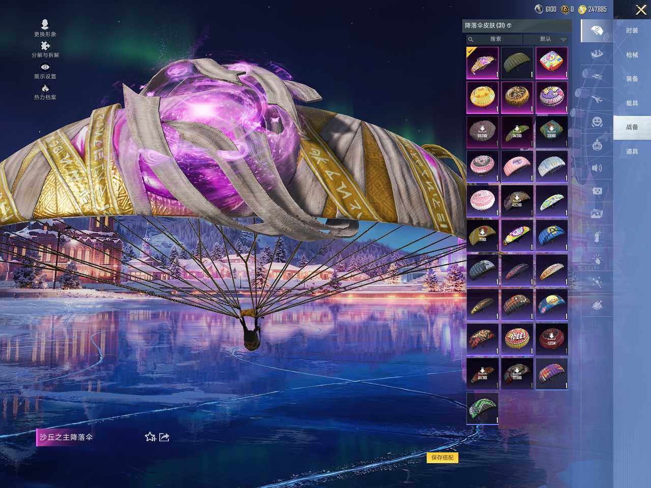 【粉色降落伞】:至尊龙雀降落伞,梦幻火箭降落伞,甜蜜誓约降落伞,碧影闪光降落伞,垂柳戏鸭降落伞,炫光之旅降落伞,沙丘之主降落伞