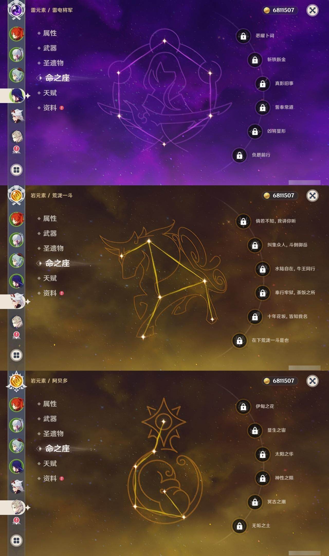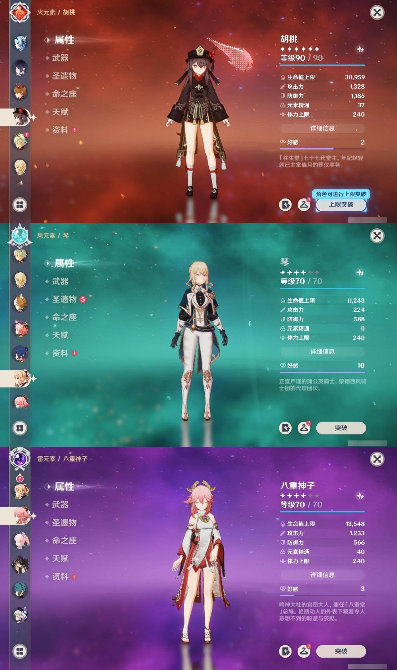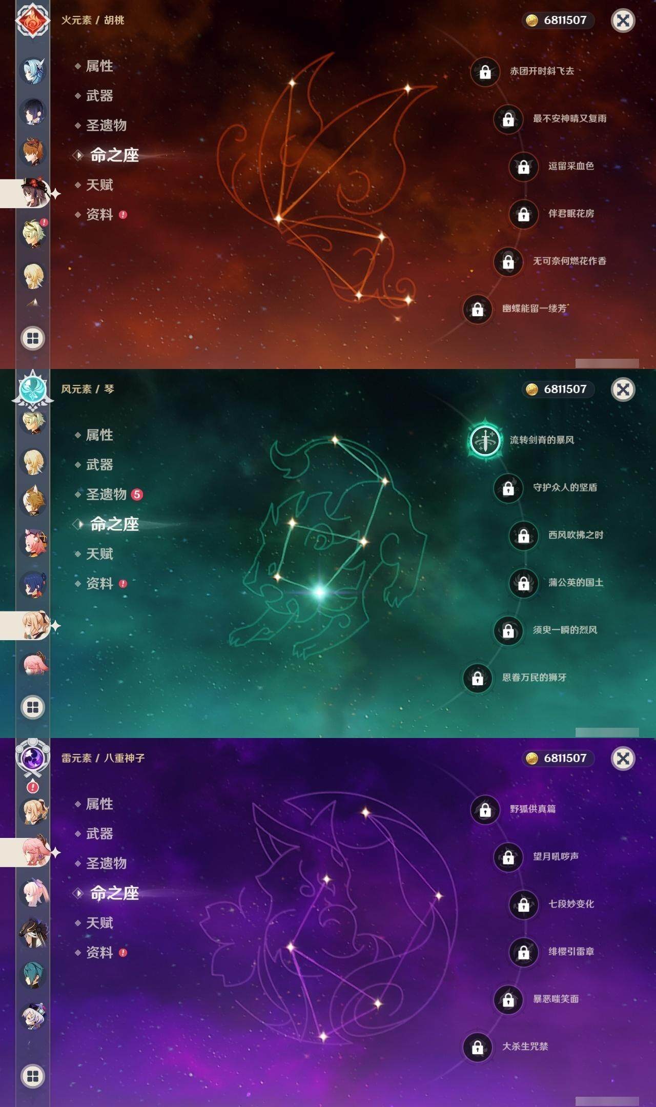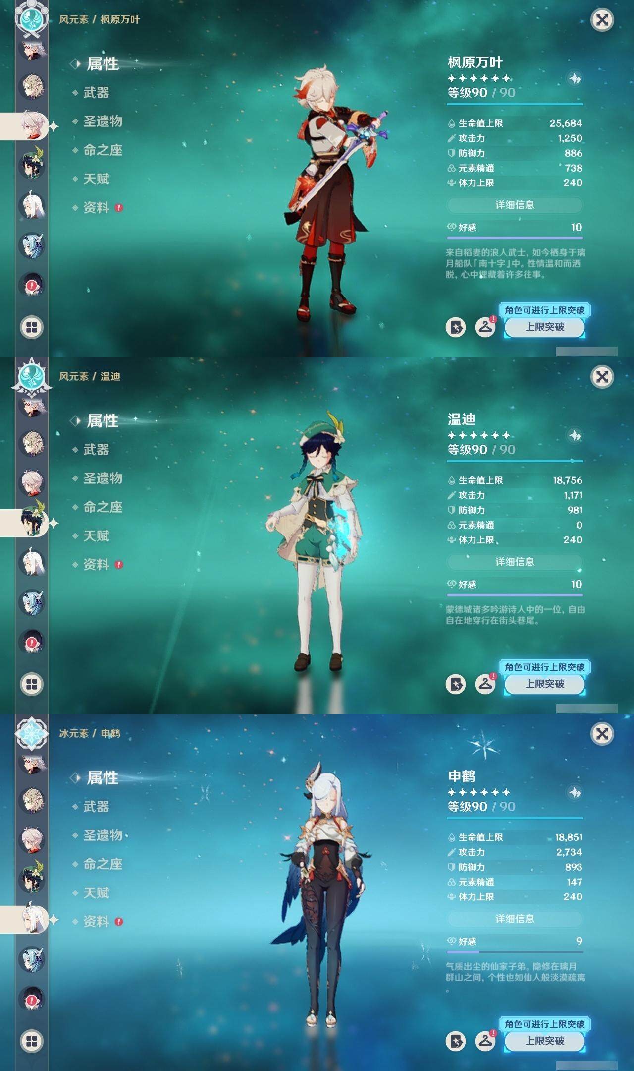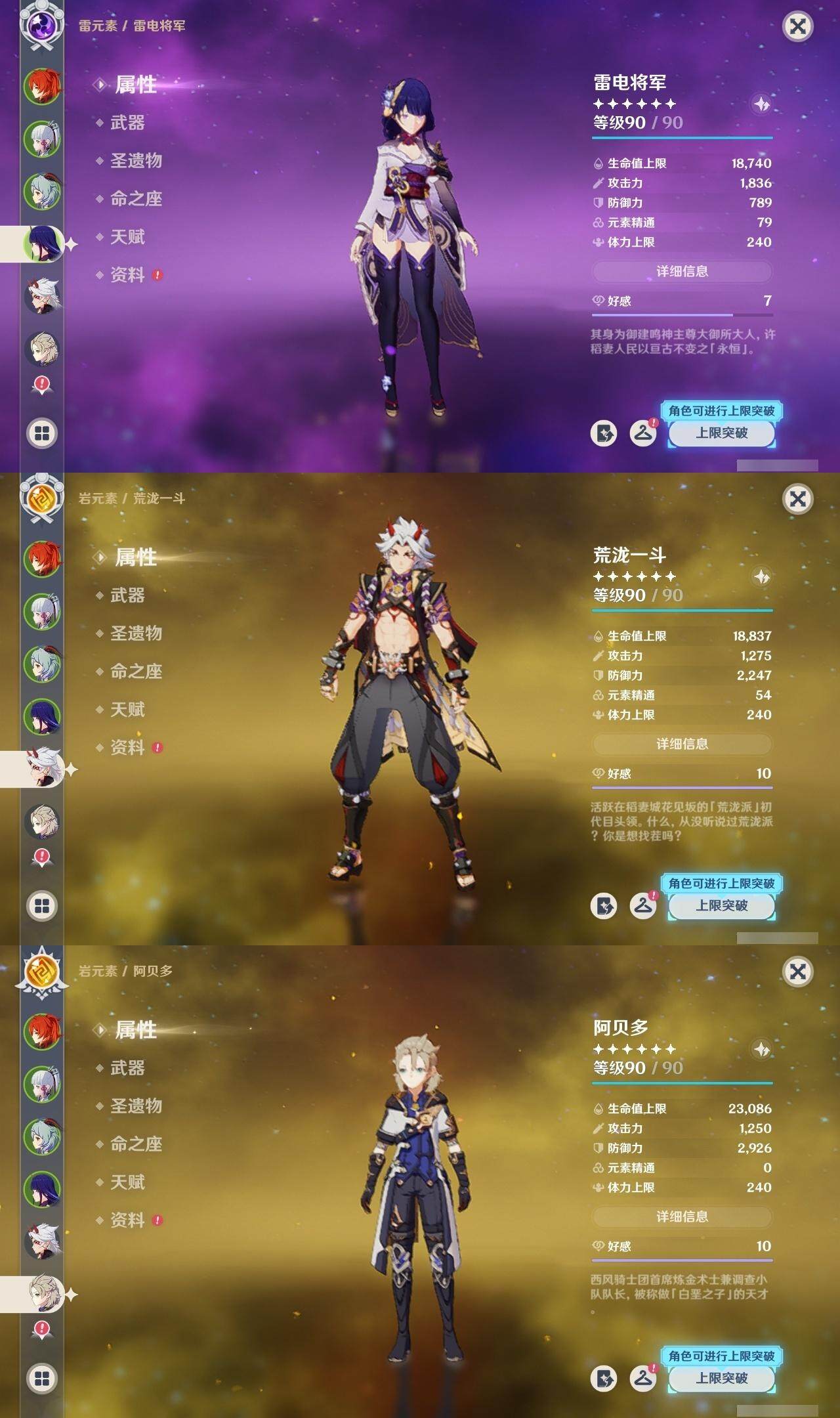 迪卢克,神里凌华,甘雨,雷电将军,荒泷一斗,阿贝多,枫原万叶,温迪,申鹤,优菈,达达利亚,胡桃,琴,八重神子,珊瑚宫心海,七七,莫娜,刻晴