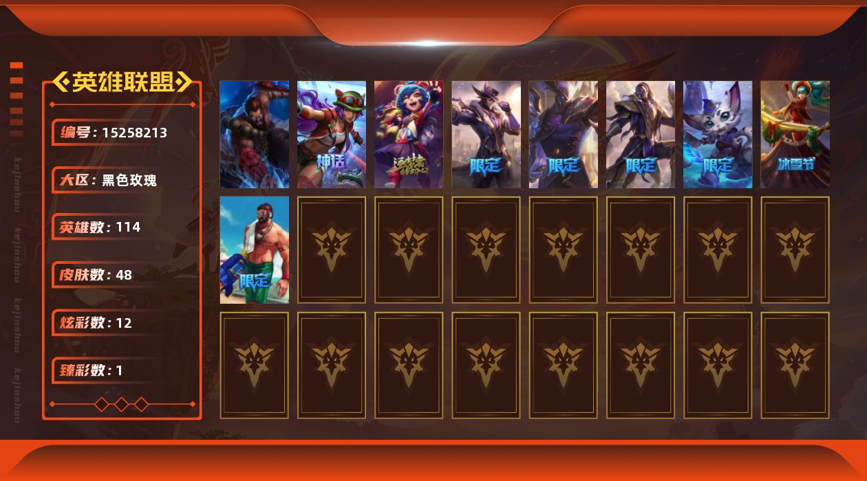 [15258213]可二次【特价出售/店主推荐】青铜段位-114英雄-48皮肤-12炫彩-1终极-2神话-7限定-4传说-11史诗