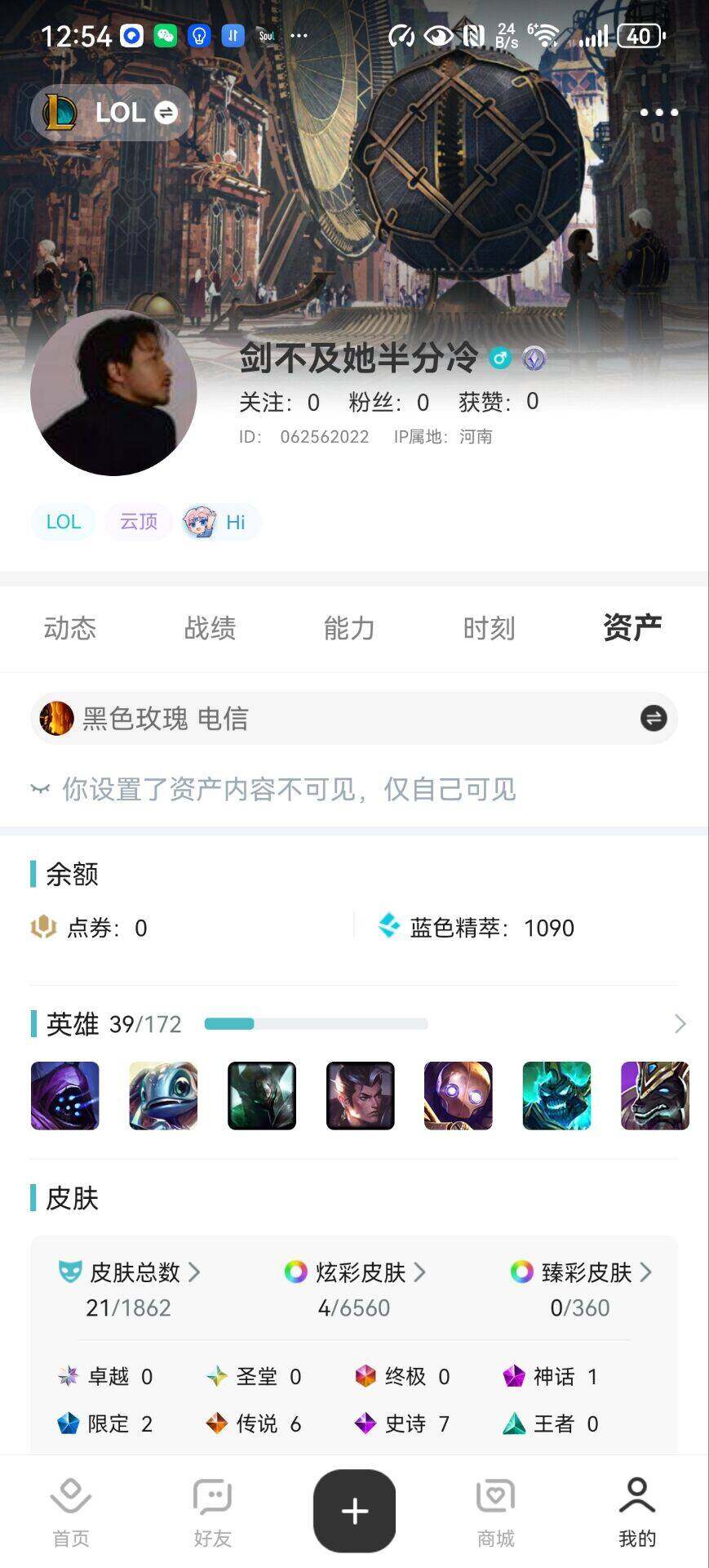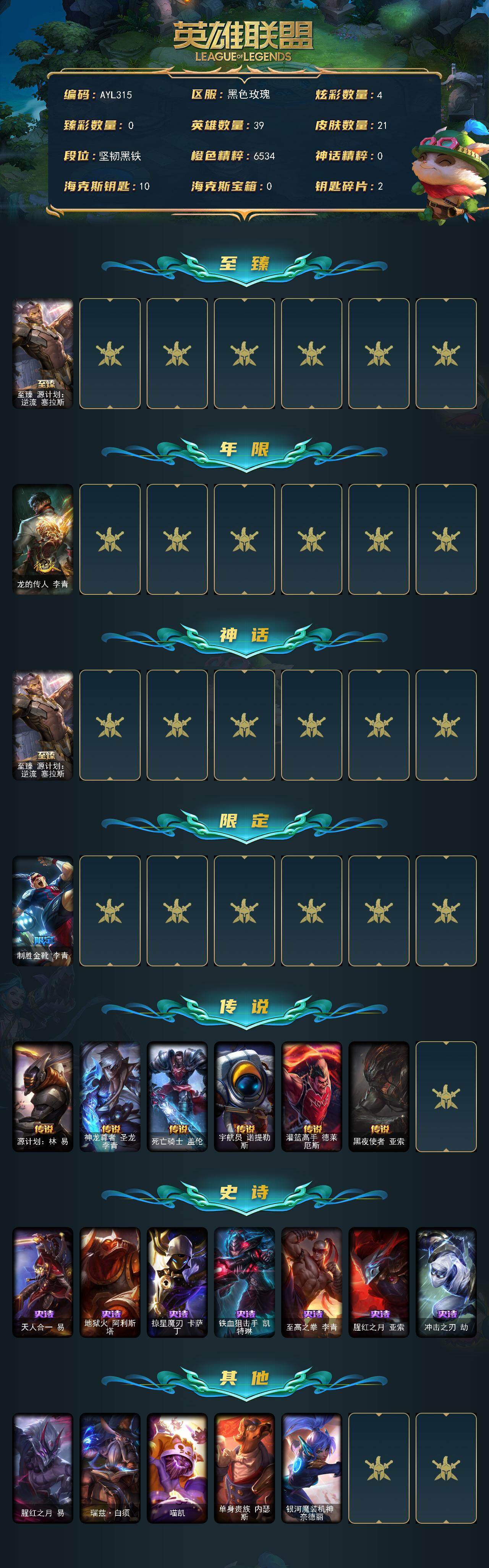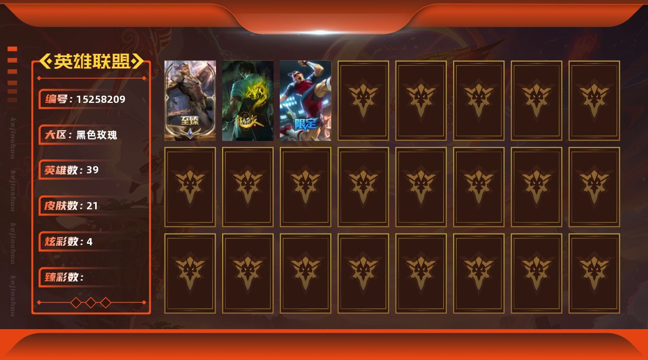 [15258209]可二次【特价出售/店主推荐】未定级段位-39英雄-21皮肤-4炫彩-0终极-1神话-2限定-6传说-7史诗