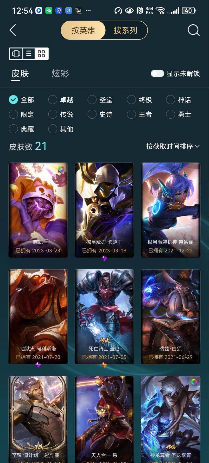 【传说皮肤】:源计划林易,神龙尊者圣龙李青,死亡骑士盖伦,宇航员诺提勒斯,灌篮高手德莱厄斯,黑夜使者亚索
