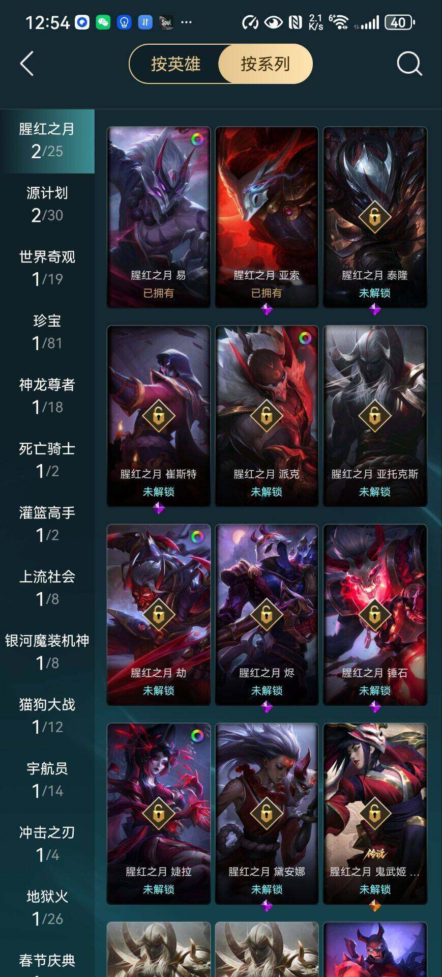 【史诗皮肤】:天人合一易,地狱火阿利斯塔,掠星魔刃卡萨丁,铁血狙击手凯特琳,至高之拳李青,腥红之月亚索,冲击之刃劫