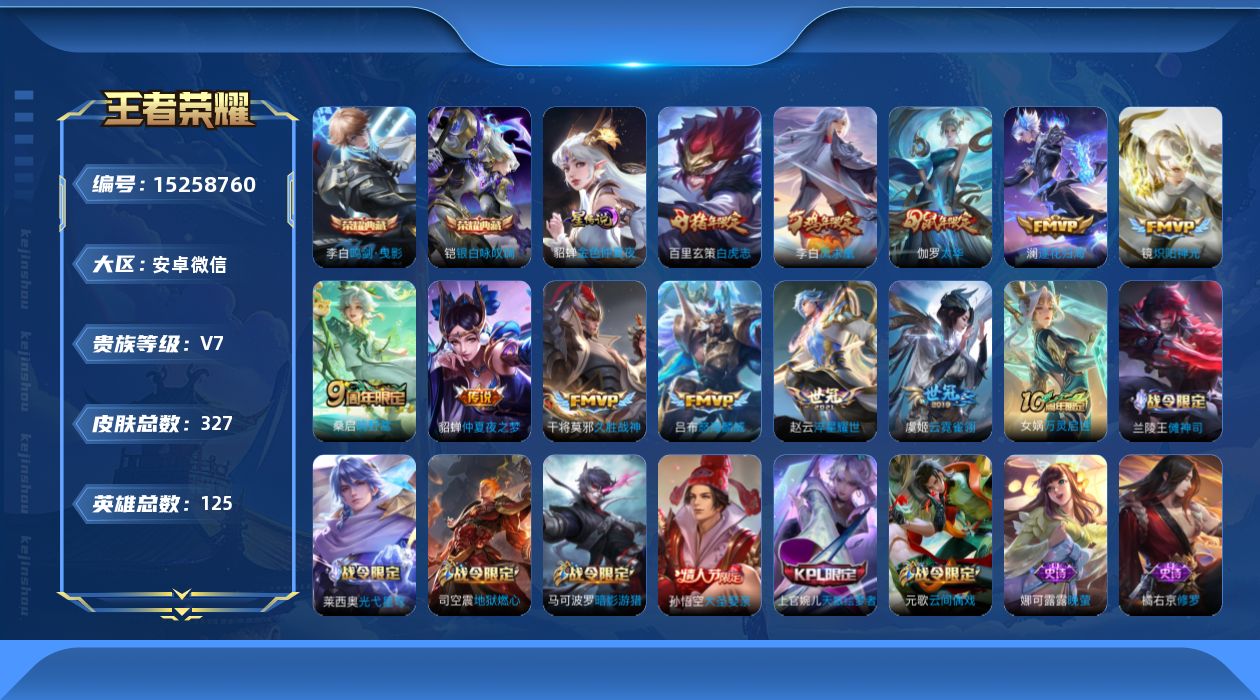 [15258760]急出买号送手机!铭文不太行!安卓WX-V7-125英雄-321皮肤-2典藏-11传说-77史诗-1星元 【英雄全皮】:蒙恬全皮,戈娅全皮 【荣耀典藏】:李白鸣剑曳影,铠银白咏叹调 【传说皮肤】:桑启鸣野蒿,澜逐花归海,吕布怒海麟威,赵云淬星耀世,镜炽阳神光,伽罗太华,干将莫邪久胜战神,虞姬云霓雀翎,百里玄策白虎志,貂蝉仲夏夜之梦,李白凤求凰 【限定皮肤】:姜子牙天穹之誓,狄仁杰阴阳师,赵云皇家上将,墨子神迹守卫,孙尚香蔷薇恋人,阿轲迷踪丽影,钟无艳超时空战士,白起夜都怪侠,芈月重明,芈月幻夜卜梦,吕布猎兽之王,周瑜赤莲之焰,元歌云间偶戏,元歌无心,夏侯惇朔风刀,甄姬落雪兰心,马可波罗暗影游猎,狄仁杰魔术师,狄仁杰万华元夜,达摩沙漠行僧,项羽海滩派对,老夫子醍醐杖,老夫子航海奇遇记,程咬金演武夺筹,刘邦夺宝奇兵,王昭君午后时光,兰陵王驯魔猎人,兰陵王金庭之子,亚瑟潮玩骑士王,孙悟空大圣娶亲,牛魔御旌,后羿圣弓游侠,李元芳银河之约,李元芳匿光侦查者,李元芳云中旅人,钟馗驱傩正仪,杨玉环遇见飞天,干将莫邪真爱魔法,雅典娜单词大作战,雅典娜黎明之约,蔡文姬繁星吟游,鬼谷子原初探秘者,鬼谷子五谷丰年,黄忠火炮绅士,苏烈千军破阵,百里玄策白虎志,百里玄策原初追逐者,弈星混沌棋,梦奇顽趣,沈梦溪星空之诺,沈梦溪大漠名商,明世隐疑决卦,明世隐吟游魔法,裴擒虎李小龙,裴擒虎擒涛扼浪,狂铁电玩高手,米莱狄御霄,云中君纤云弄巧,伽罗太华,盾山御銮,猪八戒西部大镖客,上官婉儿梁祝,上官婉儿天狼绘梦者,嫦娥拒霜思,嫦娥暖冬兔眠,西施玲珑珍味,蒙犽狂想玩偶喵,鲁班大师探海日志,镜匿光追影者,桑启海盐诗旅,暃星界游侠,戈娅驭风魔法,艾琳女武神,艾琳流音漫舞,司空震地狱燃心,阿古朵江河有灵,张良古海寻踪,蒙犽百解令,蒙恬荣光圣徽,高渐离燃音魔法,妲己灵卜魔法,鬼谷子天穹祈灯,沈梦溪龙舞盛年,鲁班七号蔬乡物语,李元芳蔬乡物语,刘邦剑破天穹,程咬金群星魔术团,镜青焰无极,项羽苍威无极,刘备异域游侠 【年限皮肤】:百里玄策白虎志,李白凤求凰,伽罗太华 【赛季限定】:芈月重明,夏侯惇朔风刀,狄仁杰万华元夜,达摩沙漠行僧,老夫子醍醐杖,程咬金演武夺筹,兰陵王金庭之子,张良古海寻踪,牛魔御旌,李元芳云中旅人,钟馗驱傩正仪,雅典娜黎明之约,鬼谷子原初探秘者,苏烈千军破阵,百里玄策原初追逐者,弈星混沌棋,梦奇顽