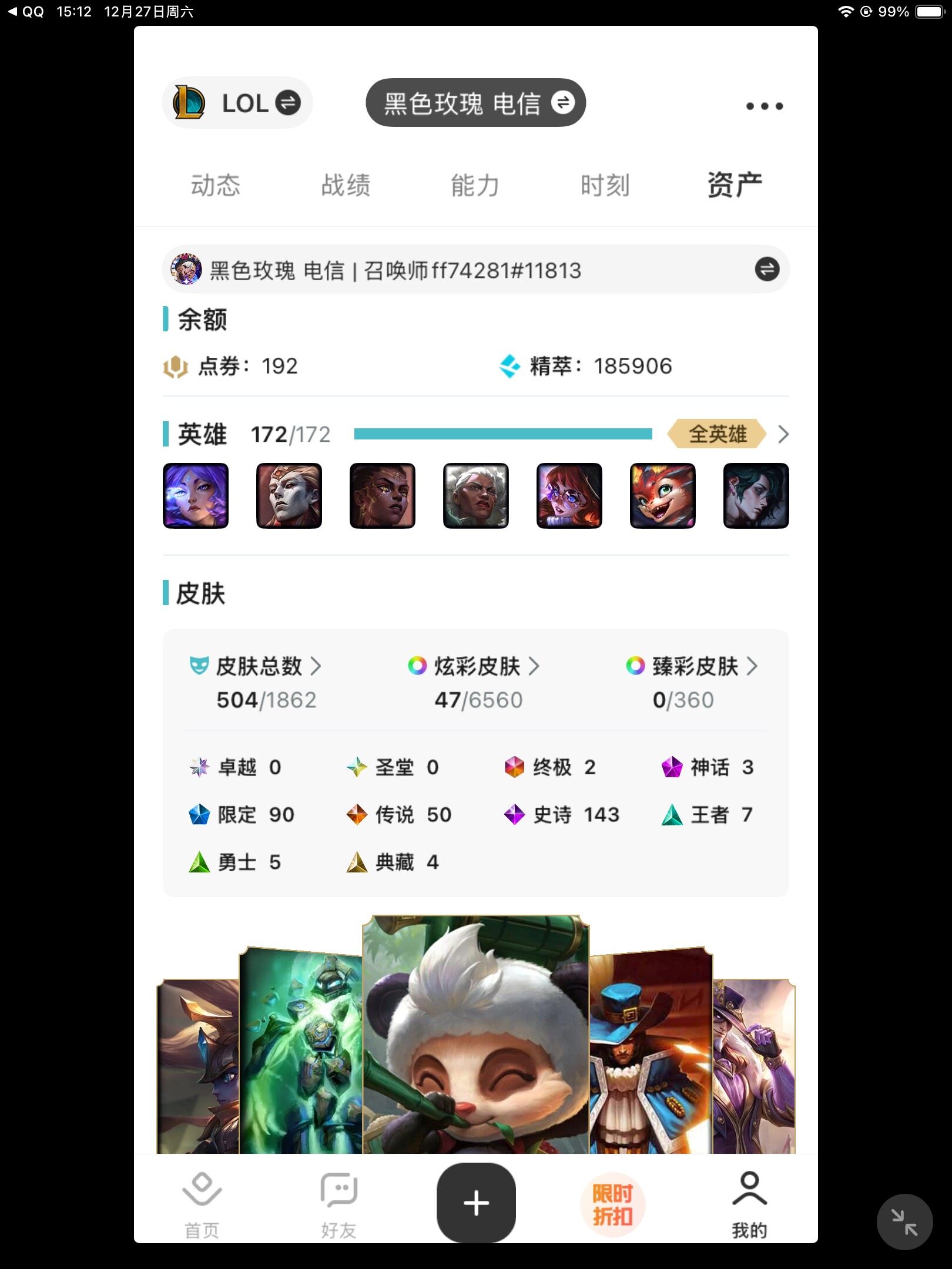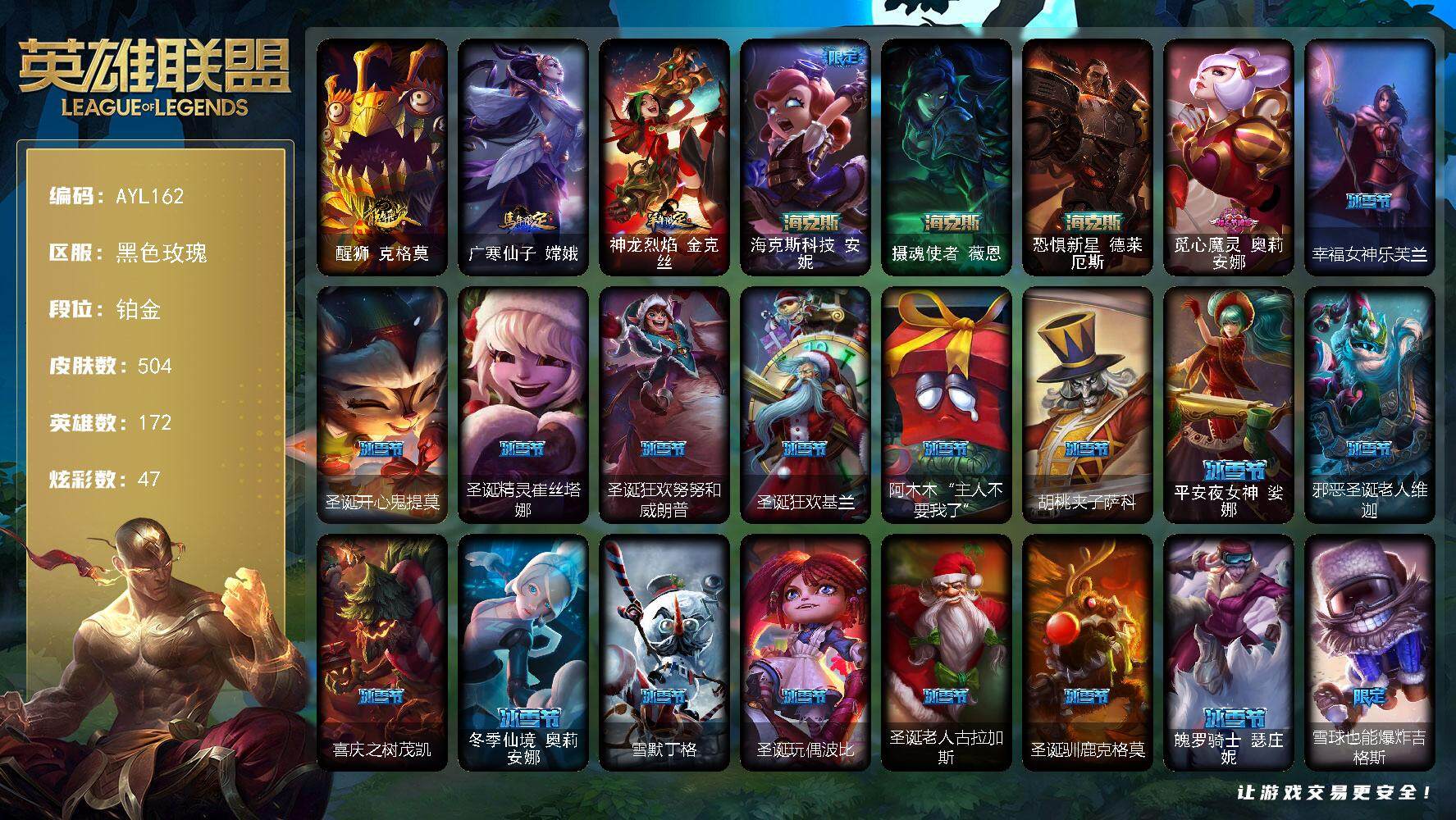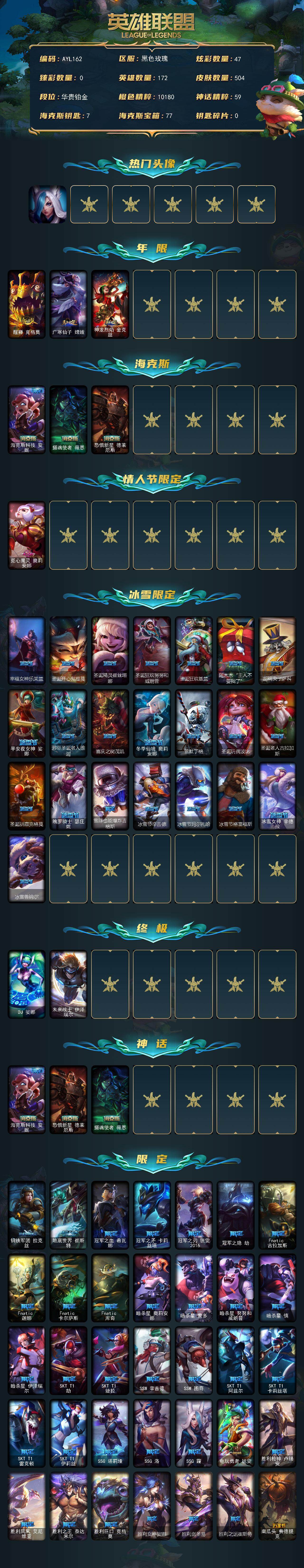 [15259820]【特价出售/店主推荐】铂金段位-172英雄-504皮肤-47炫彩-2终极-3神话-90限定-50传说-143史诗