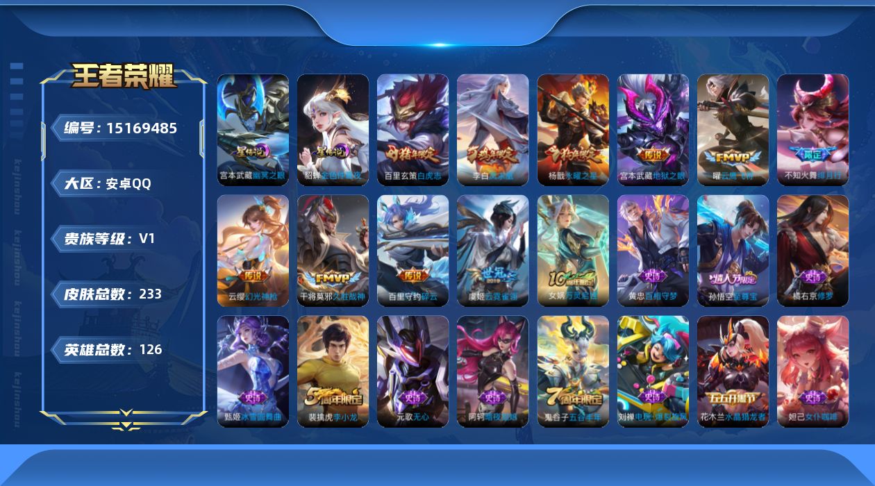 [15169485]可二次【店主推荐捡漏号!可直接换绑】发育路33段,安卓Q-V1-最强王者段位-126英雄-232皮肤-3星传说-11传说-49史诗