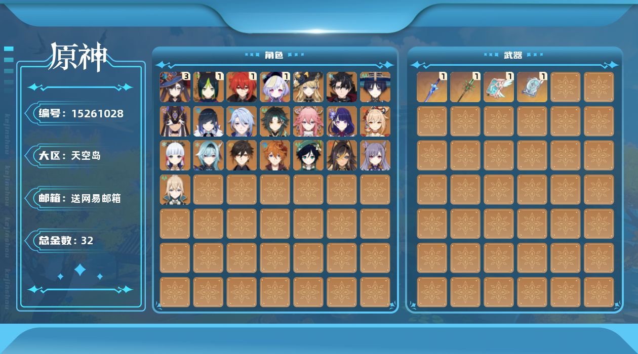[15261028]59级/32黄/女主/22个五星角色/4个五星武器