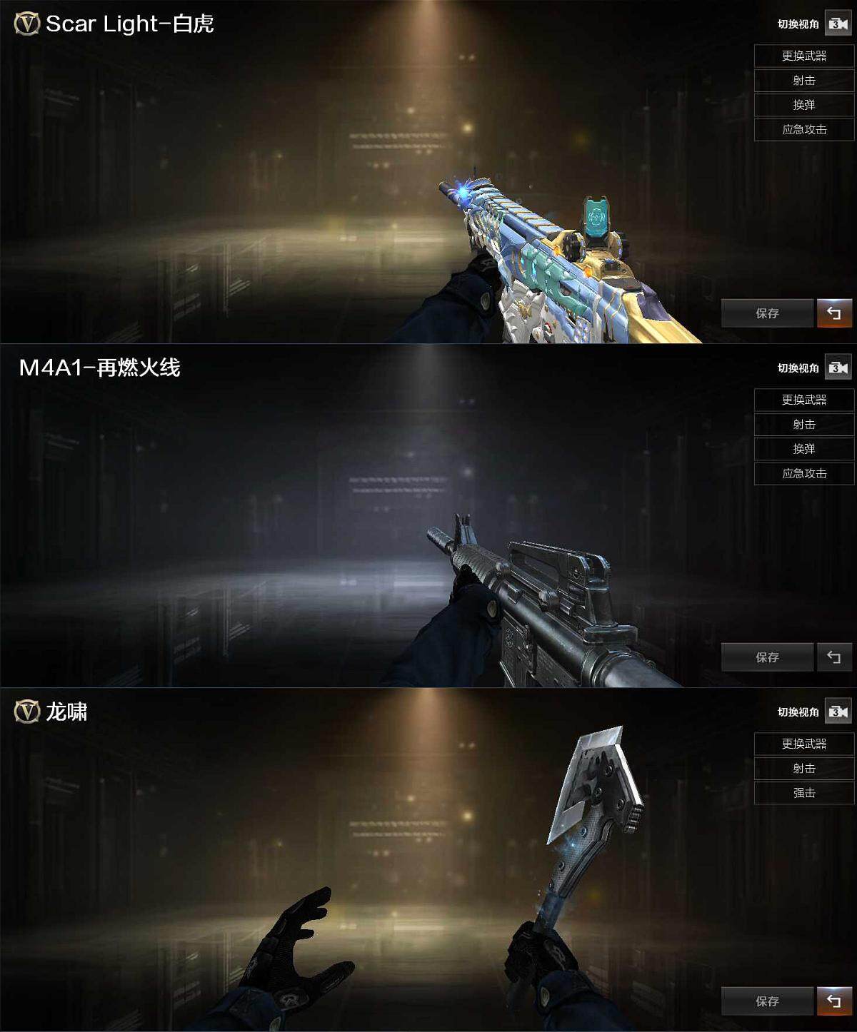 【皮肤】:白虎-热带奇洋 皮肤,M4A1-再燃火线,轻型军用手斧-再燃火线