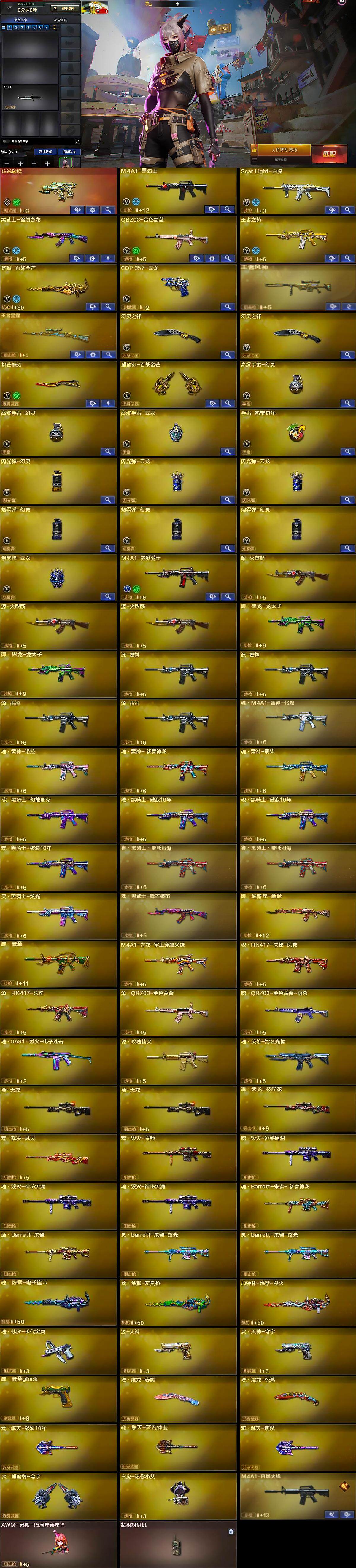 【英雄级武器】:M4A1-黑骑士,Scar Light-白虎,黑武士-锦绣游龙,QBZ03-金色蔷薇,王者之势-觉醒版,炼狱-百战金芒,COP 357-云龙,幻灵之锋*2,炽芒蝶刃,麒麟刺-百战金芒,高爆手雷-幻灵*2,高爆手雷-云龙,手雷-热带奇洋,闪光弹-幻灵,闪光弹-云龙*2,烟雾弹-幻灵*3,烟雾弹-云龙,M4A1-赤狱骑士