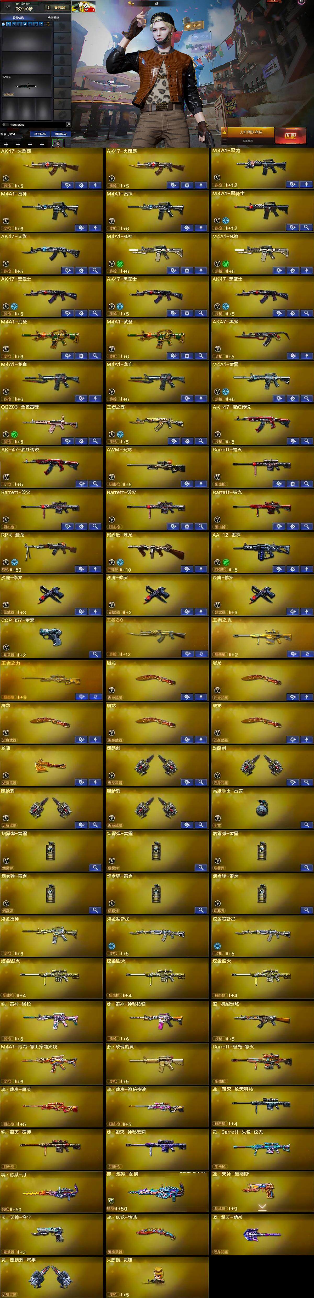 【英雄级武器】:AK47-火麒麟*2,M4A1-黑龙,M4A1-雷神*2,M4A1-黑骑士,AK47-无影,M4A1-死神*2,AK47-黑武士*3,M4A1-武圣*2,AK47-黑鲨,M4A1-龙血*2,M4A1-雷霆,QBZ03-金色蔷薇,王者之翼-觉醒版,AK-47-猩红传说*2,AWM-天龙,Barrett-毁灭*3,Barrett-极光,RPK-盘龙,汤姆逊-烈龙,AA-12-雷霆,沙鹰-修罗*3,COP-雷霆,屠龙*5,龙啸,麒麟刺*4,高爆手雷-雷霆,烟雾弹-雷霆*6