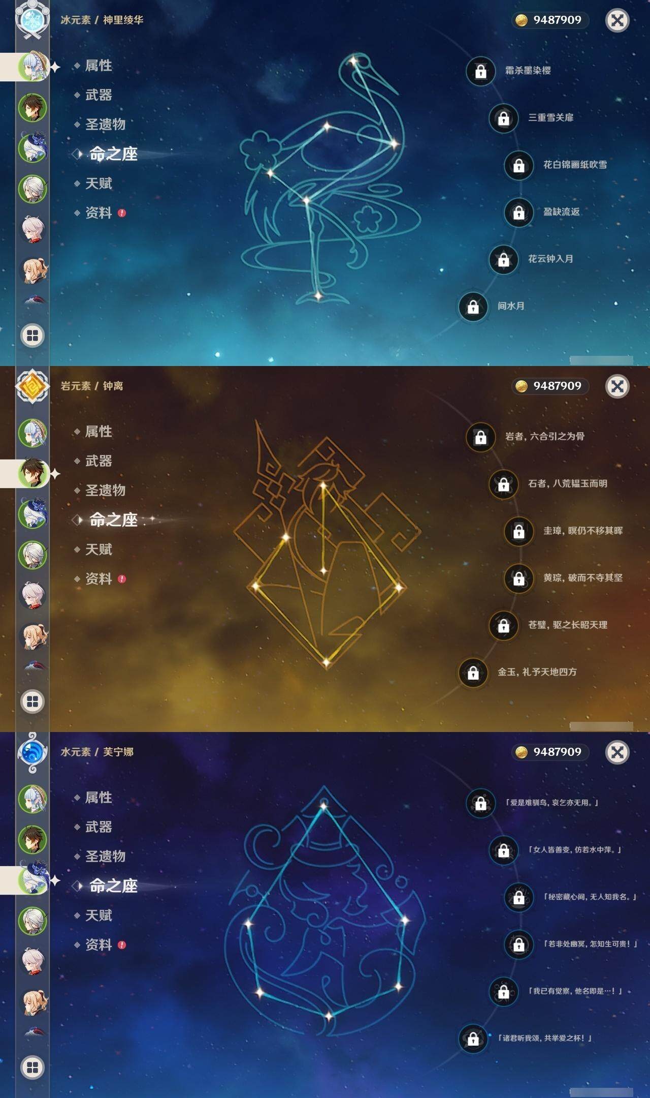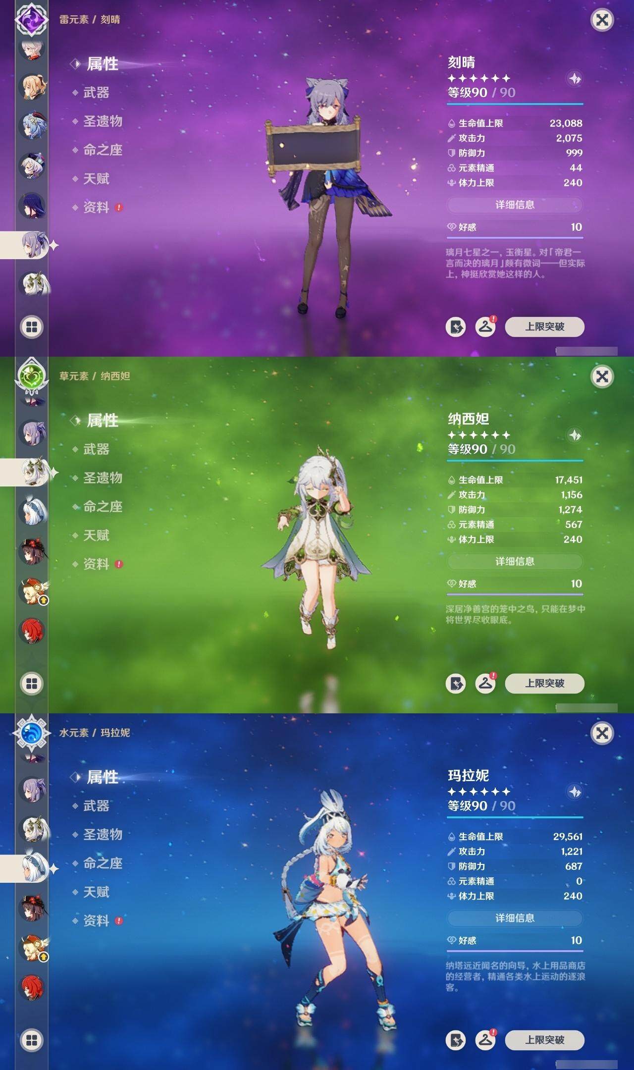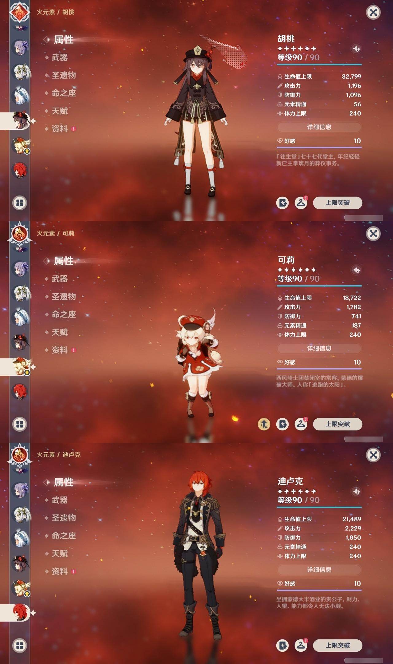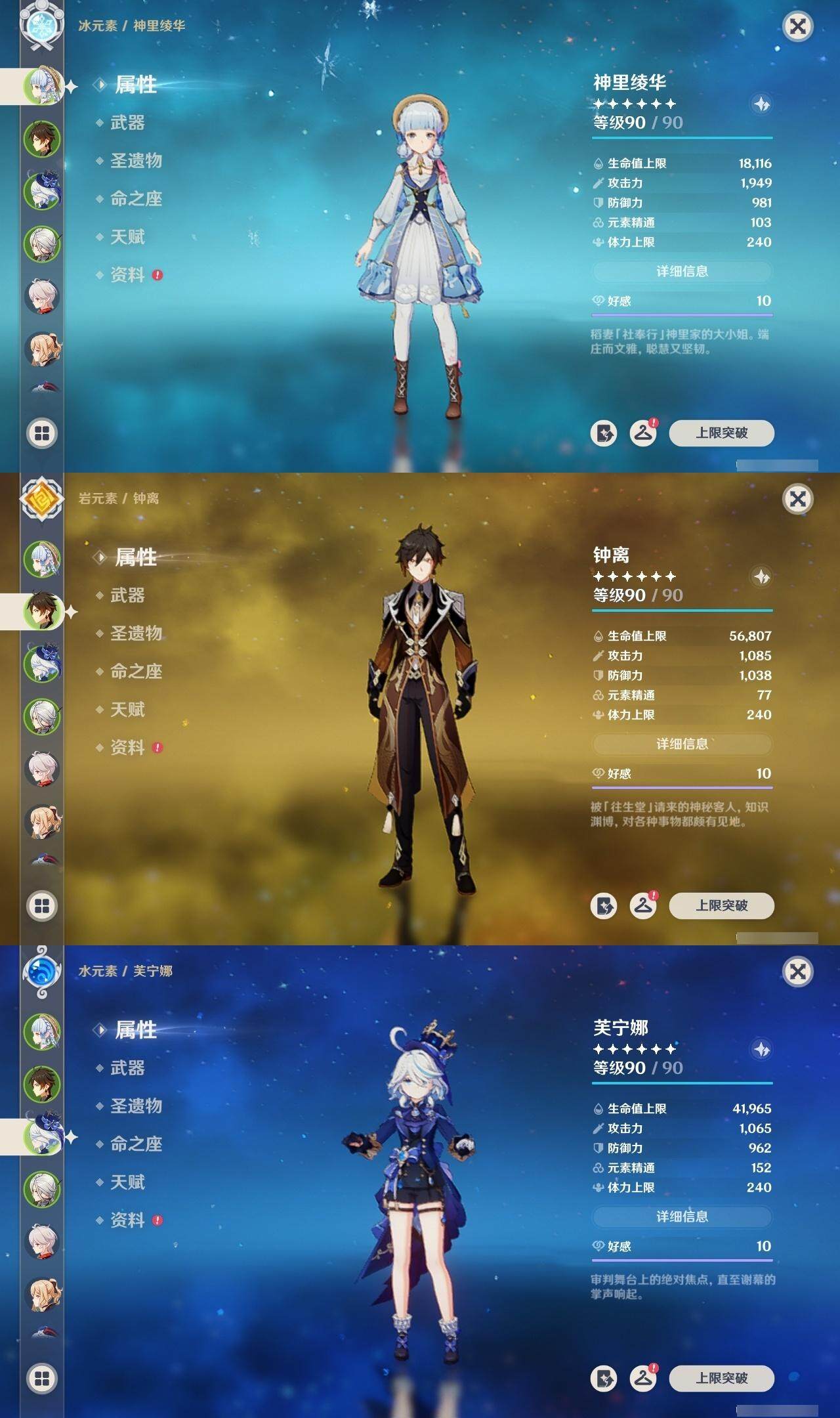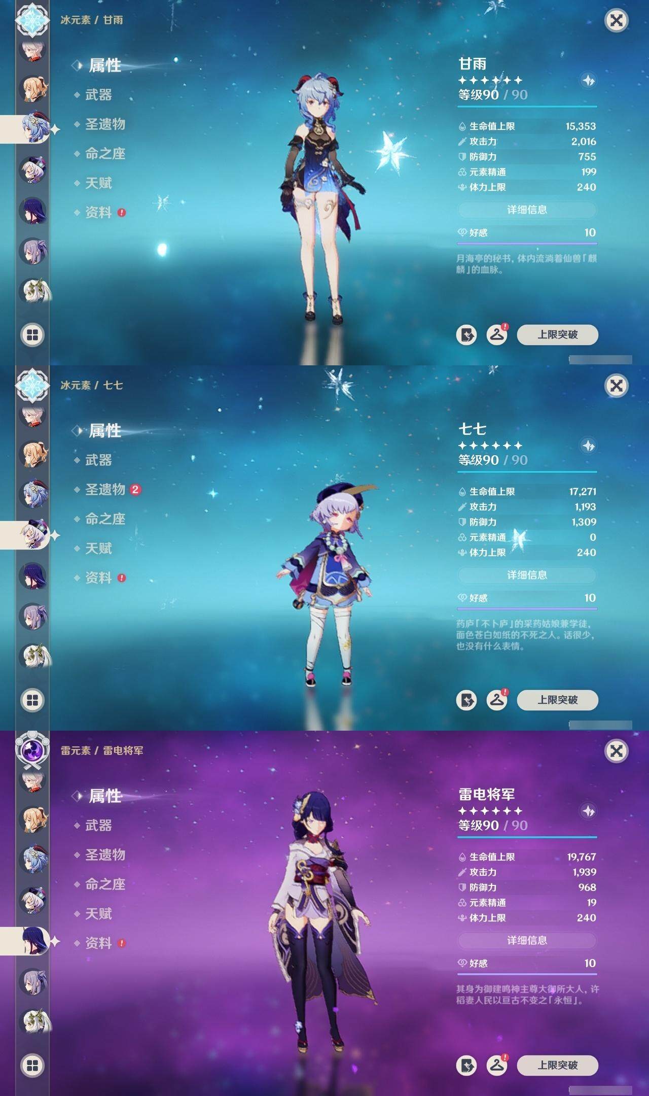 神里凌华,钟离,枫原万叶,琴,甘雨,七七,雷电将军,刻晴,胡桃,可莉,迪卢克,莫娜