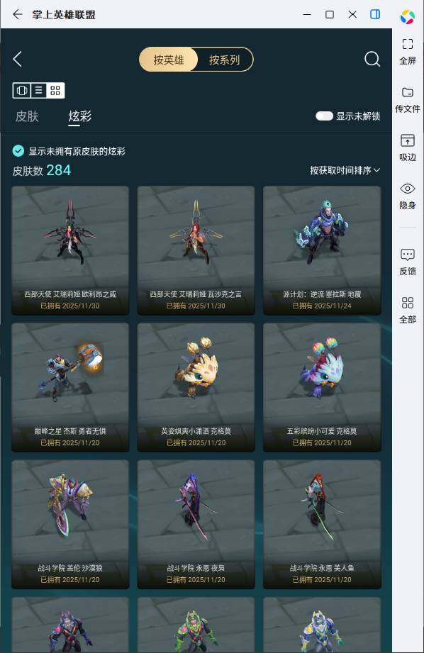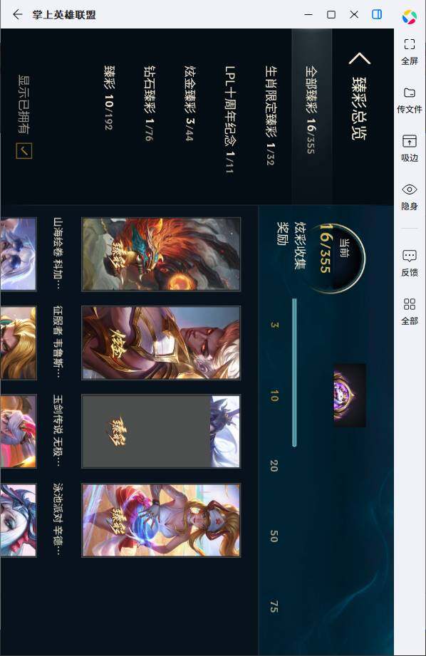 【臻彩皮肤】:天龙之子卡莎飞龙乘云,无畏骑士瑟庄妮赤子初心,冰霜之刃艾瑞莉娅炫金,墨之影武者亚索金墨耀影,征服者韦鲁斯炫金,神龙尊者圣龙李青龙腾云起,玉剑传说无极麒麟,弹幕天使卡莎炽天使勇敢,星之守护者金克丝黑洞,山海绘卷科加斯朱红,泳池派对辛德拉荔枝枝连击,可爱可爱粉红红布里茨,殿堂传奇乐芙兰登神,魔女阿卡丽虚荣,净雪之月莫甘娜冬虹,心之钢伊泽瑞尔天纵才华