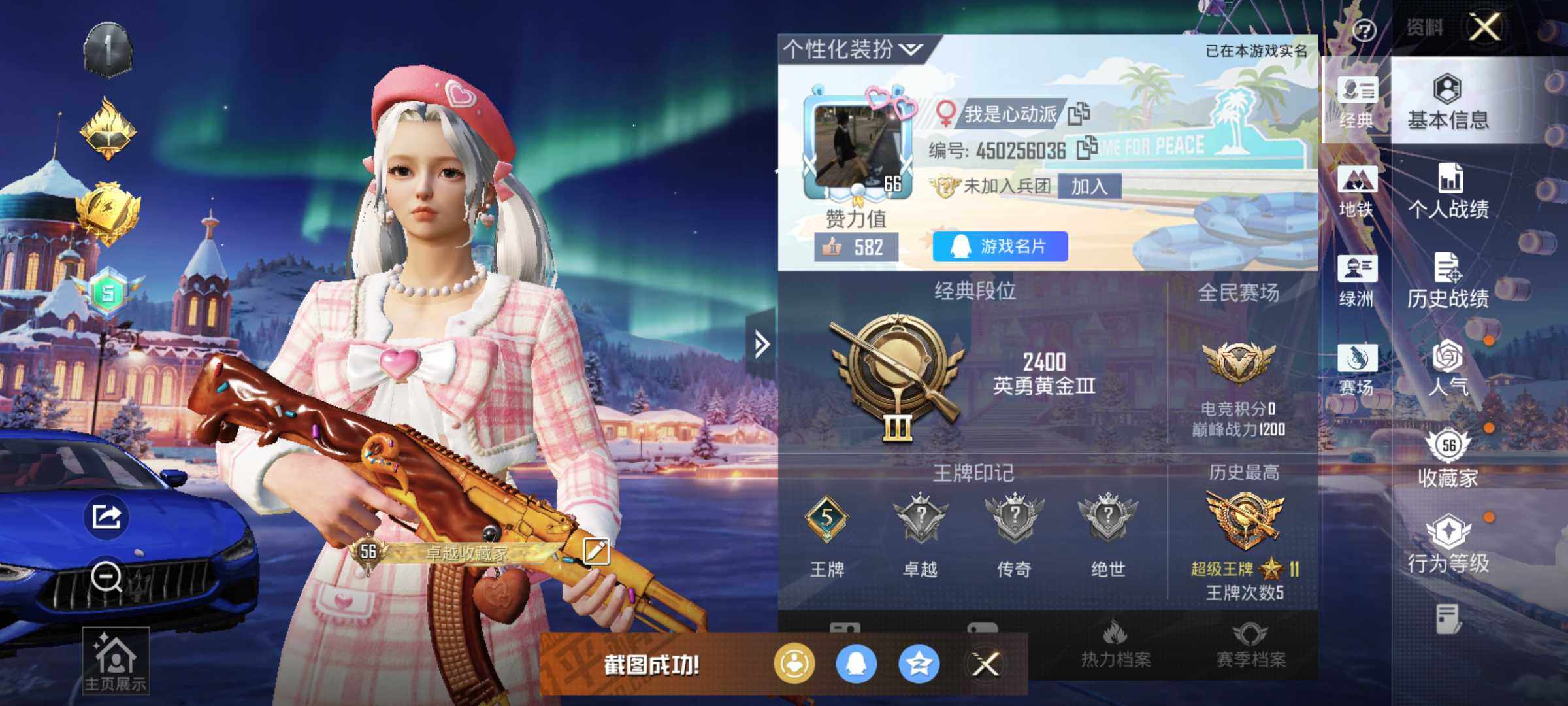 [15264236]【店主推荐捡漏号!可直接换绑】安卓 手Q-12粉装-5特效枪-1载具-2粉色飞行器-50899热力值-5王牌印记-125套装-150枪皮【热门品类】:粉装-梦幻火箭,粉装-缤纷油彩,套装-S1赛事,套装-浪漫天命,套装-奇异狩猎者,角色-军刀雅典娜,套装-忍者信条【粉色套装】:粉装-宝贝奶油派,粉装-天使彩虹糖,粉装-蝶舞迷情,粉装-梦幻火箭,粉装-缤纷油彩,粉装-新星烈龙,粉装-冰霜白皇,粉装-炙焰红王,粉装-岚岚物语,角色-复仇流浪者,粉装-彩虹甜喵,粉装-第五大道【粉色枪皮等级】:AKM-甜心宝贝(六级),M16A4-垂柳戏鸭(二级),SCAR-L-锦绣绵绵(四级),GROZA-旋转彩虹(四级),DP-28-豹影疾电(一级)【粉色载具】:玛莎拉蒂Ghibli(蓝)【粉色枪皮】:AKM-甜心宝贝,M16A4-垂柳戏鸭,SCAR-L-锦绣绵绵,GROZA-旋转彩虹,DP-28-豹影疾电【粉色飞行器】:春暖花开飞行器,梦幻火箭飞行器