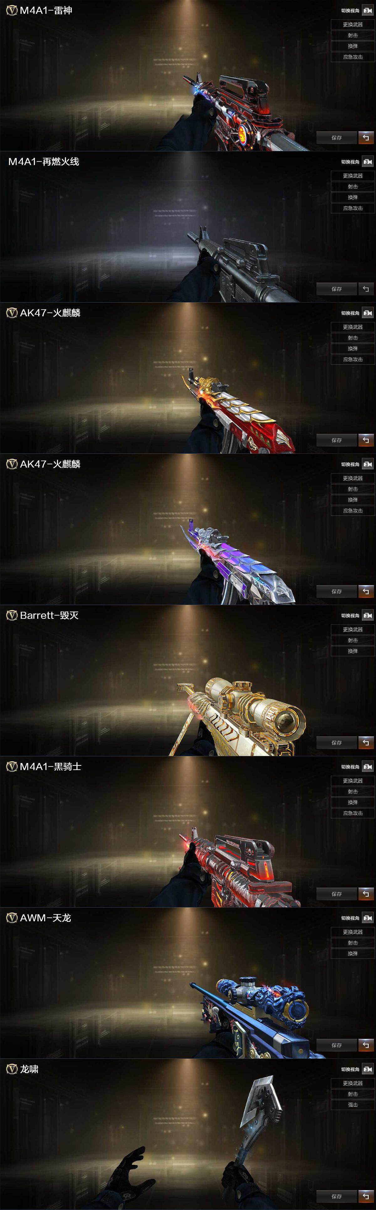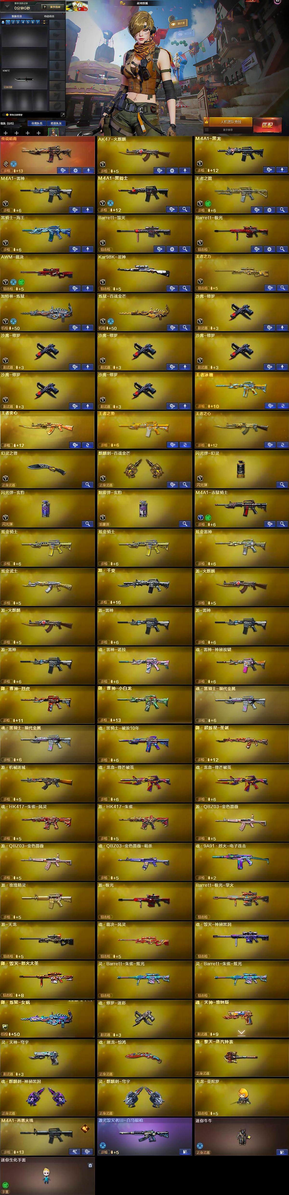 【热门武器】:传说暗裔,王者炎心,Kar98K-星神,M4A1-黑骑士,加特林-炼狱,沙鹰-修罗*6