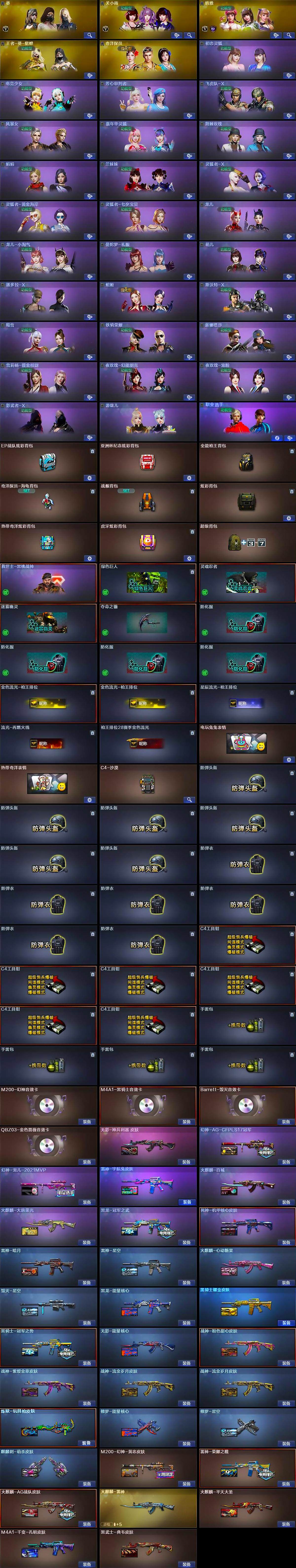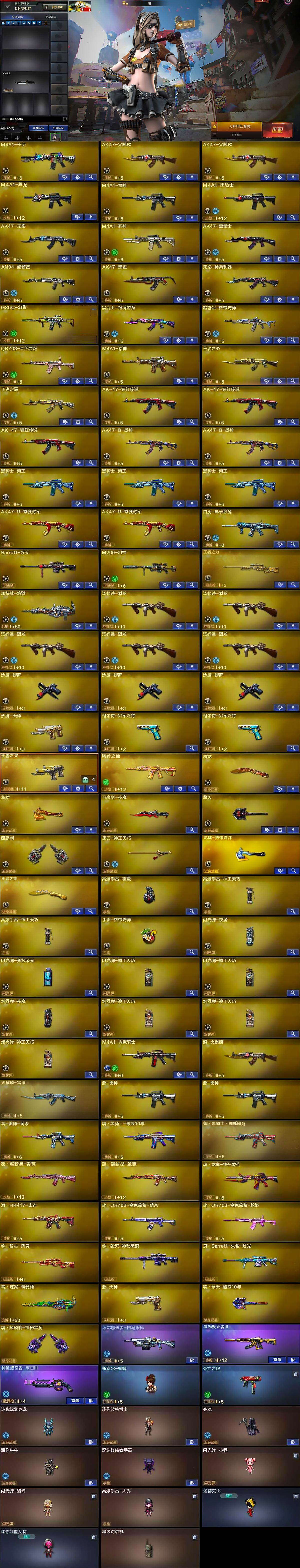 【热门武器】:G36C-幻影,QBZ03-金色蔷薇,M200-幻神,死亡之眼,凤吟之魄,白虎-电玩蓝兔,柯尔特-冠军之特*2,M4A1-黑骑士,汤姆逊-烈龙*5,加特林-炼狱,斯泰尔-蝴蝶,羊驼玩偶,沙鹰-修罗*3