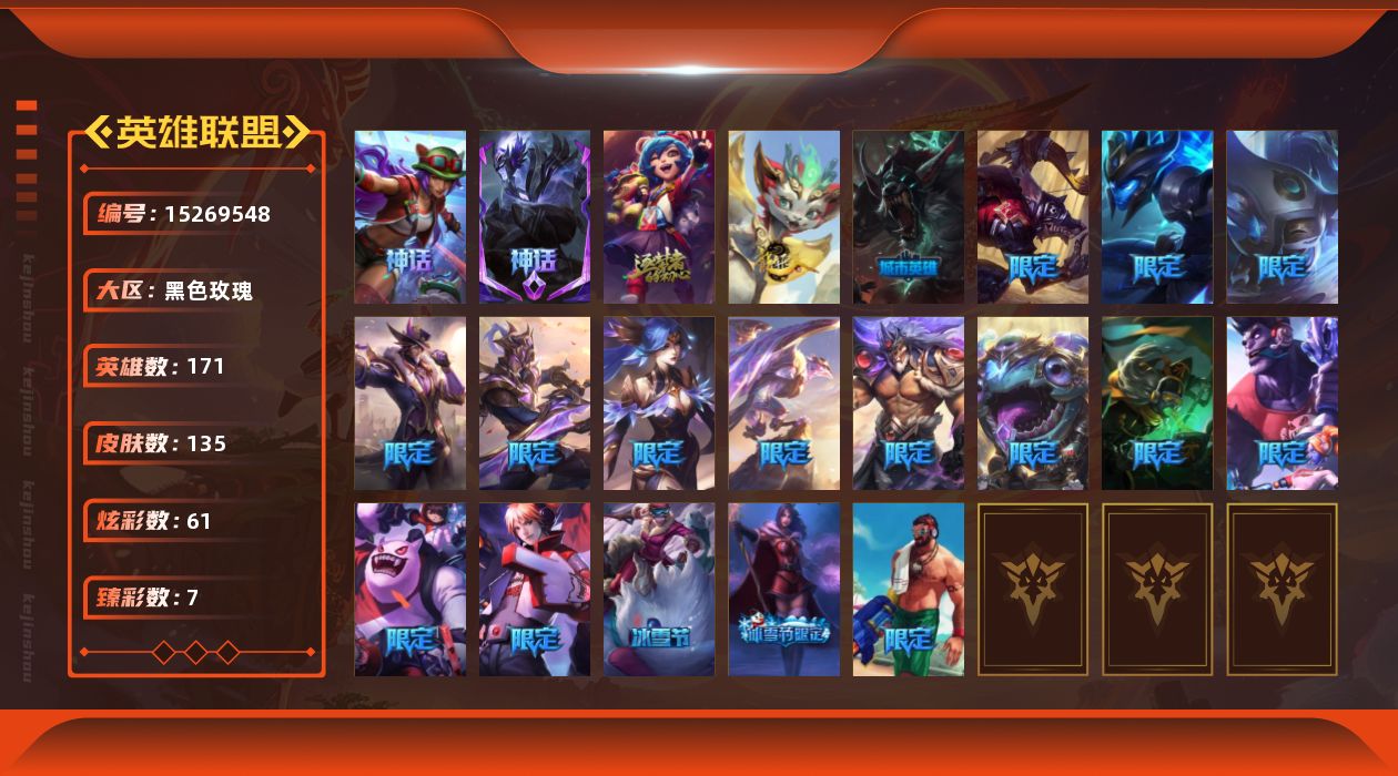 [15269548]【店主推荐捡漏号!可直接换绑】未定级段位-171英雄-135皮肤-61炫彩-0终极-4神话-21限定-22传说-27史诗