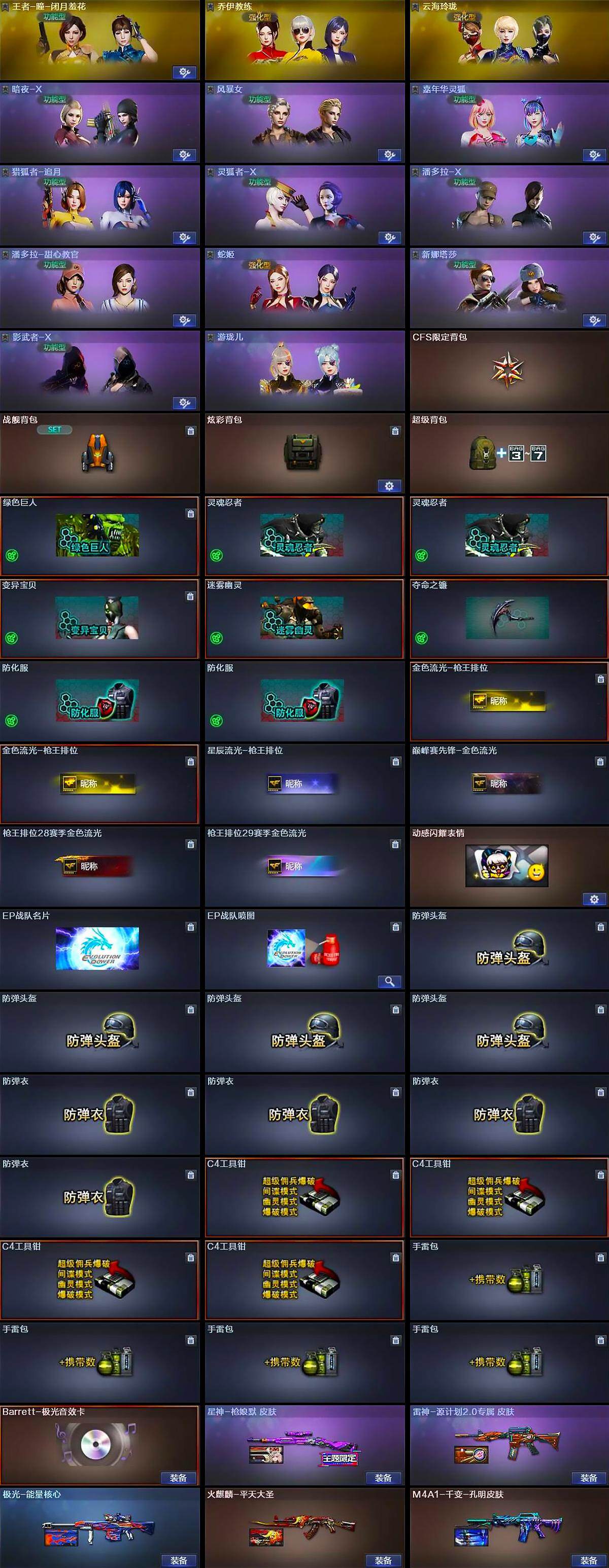 【皮肤】:星神-枪娘默 皮肤,雷神-源计划2.0专属 皮肤,火麒麟-平天大圣,M4A1-千变-孔明皮肤,极光-能量核心