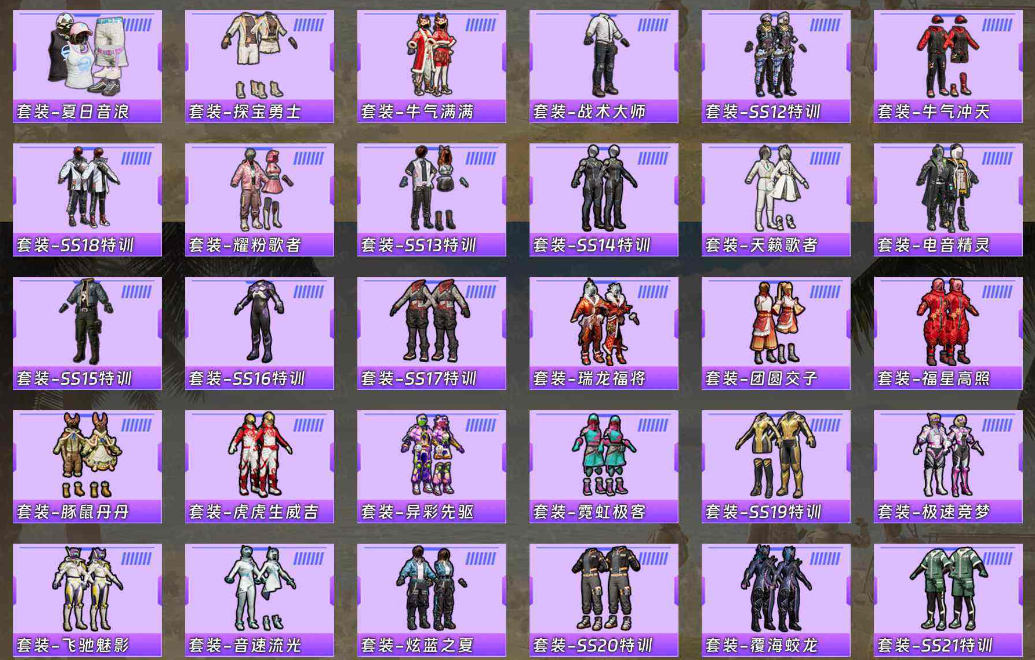 套装-炙焰牛王,套装-炫光之旅,角色-圣堂之誓,角色-烟云彩露