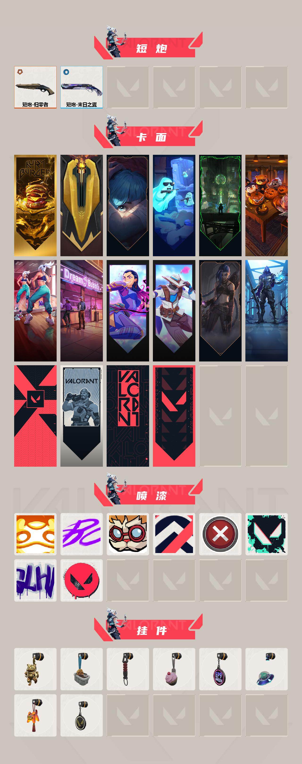 【卡面】:终章:激斗汉堡 卡面,进入射程 卡面,《双城之战》拥抱 卡面,精灵大战 卡面,欢迎来到底城 卡面,南瓜盛典 卡面,热舞环节 卡面,梦幻奶茶 卡面,无畏契约GO!第一卷:芮娜 卡面,无畏契约GO!第一卷:零 卡面,《双城之战》金克丝 卡面,暗枪 卡面,代号红色 卡面,新兵报到 卡面,V契约 卡面,无畏契约 卡面