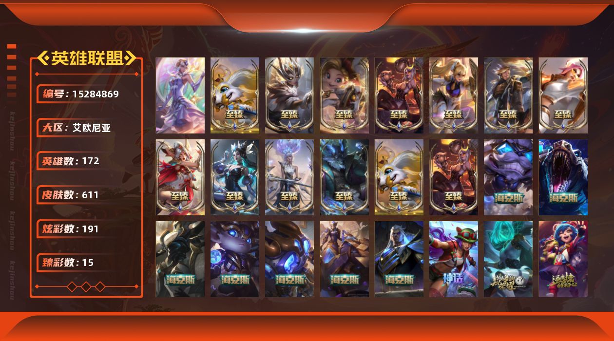 [15284869]【特价出售/店主推荐】铂金段位-172英雄-611皮肤-191炫彩-1终极-24神话-103限定-69传说-148史诗