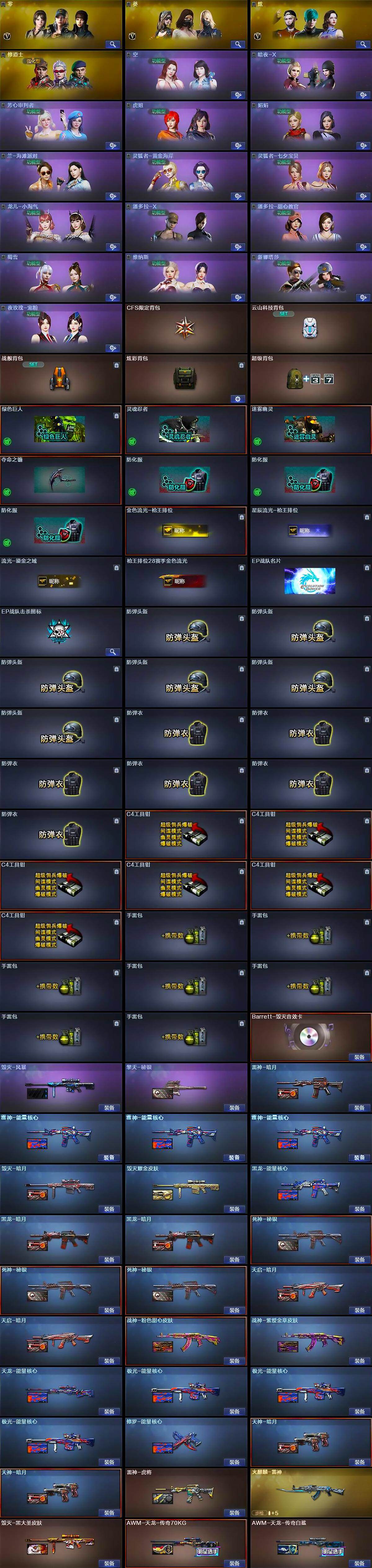 【道具】:CFS限定背包,云山科技背包,战舰背包,炫彩背包,超级背包,绿色巨人,灵魂忍者,迷雾幽灵,夺命之镰,防化服*3,金色流光-枪王排位,星辰流光-枪王排位,流光-鎏金之域,枪王排位28赛季金色流光,EP战队名片,EP战队击杀