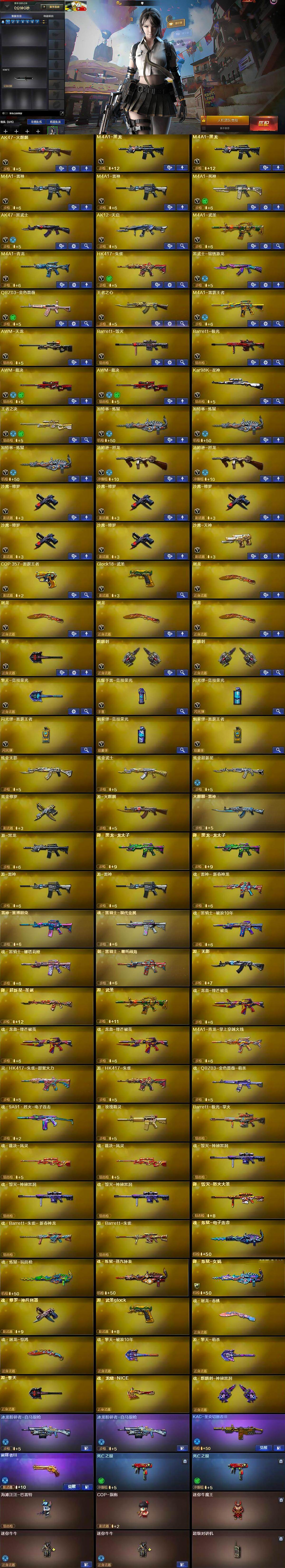 【英雄级武器】:AK47-火麒麟,M4A1-黑龙*2,M4A1-雷神*2,M4A1-死神,AK47-黑武士,AK12-天启,M4A1-武圣,M4A1-青龙,HK417-朱雀,黑武士-锦绣游龙,QBZ03-金色蔷薇,王者之心-觉醒版,M4A1-雷霆王者-觉醒版,AWM-天龙,Barrett-毁灭,Barrett-极光,AWM-裁决*2,Kar98K-星神,王者之决-觉醒版,加特林-炼狱*3,汤姆逊-烈龙*2,沙鹰-修罗*5,沙鹰-天神,COP 357-雷霆王者-觉醒版,Glock18-武圣,屠龙*4,擎天,麒麟刺*2,擎天-竞技荣光,高爆手雷-竞技荣光,闪光弹-竞技荣光,闪光弹-雷霆王者-觉醒版,烟雾弹-竞技荣光,烟雾弹-雷霆王者-觉醒版