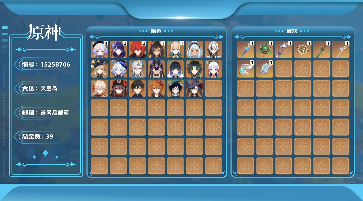 [15258706]60级/39黄/女主/20个五星角色/9个五星武器