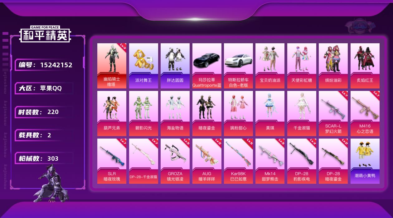 [15242152]地铁满天赋【暑期末清货/特价急出/永久包赔】:苹果 手Q-1红装-12粉装-10特效枪-2载具-10.5w热力值-22印记-220套装-303枪皮【热门品类】:套装-派对舞王,角色-军刀雅典娜,套装-胖达圆圆【角色神装等级】:幽焰骑士-维塔(三级)【稀有载具】:特斯拉Model 3(珍珠白),玛莎拉蒂Quattroporte(夜幕蓝)【特效枪等级】:SCAR-L-梦幻火箭(七级),M416-心之恋语(七级),GROZA-镜光银凌(五级),AUG-暖羊咩咩(五级),Kar98K-巳巳如意(五级),Mk14-甜梦熊击(五级),SLR-暗夜玫瑰(七级),DP-28-暗夜鎏金(二级),DP-28-千金淑猫(七级),DP-28-豹影疾电(三级)【优质套装】:粉装-宝贝奶油派,粉装-天使彩虹糖,粉装-缤纷油彩,粉装-炙焰红王,粉装-葫芦兄弟,粉装-碧影闪光,粉装-海盐物语,粉装-暗夜鎏金,粉装-飒粉甜心,角色-美琪,角色-千金淑猫【优质飞行器】:童趣迷兔飞行器,幽焰列车飞行器,凤舞九天飞行器