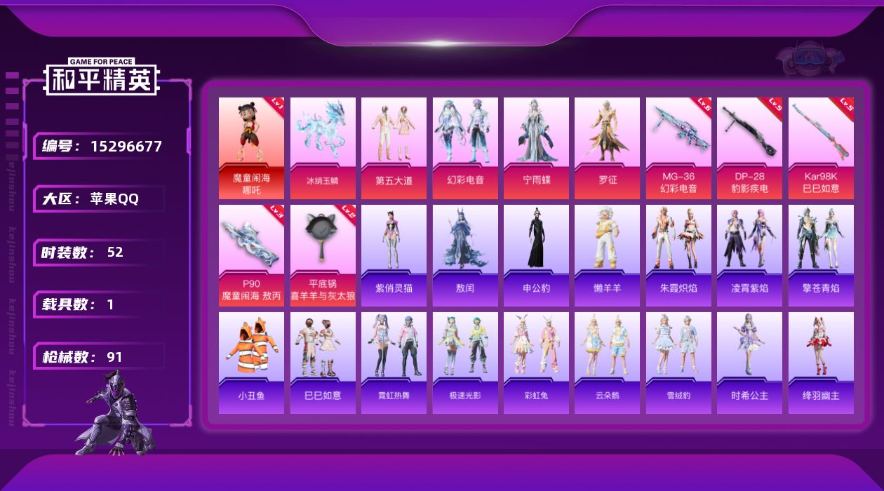 [15296677]可二次【店主推荐捡漏号!可直接换绑苹果 地铁满天赋 手Q-1神装-4粉装-5特效枪-1载具-2粉色飞行器-28592热力值-5王牌印记-52套装-91枪皮【红色神装等级】:魔童闹海-哪吒(一级)【红色角色神装】:魔童闹海-哪吒【热门品类】:套装-小丑鱼【粉色载具】:冰绡玉鳞粉色套装】:粉装-第五大道,粉装-幻彩电音,角色-宁雨蝶,角色-罗征【粉色枪皮等级】:P90-魔童闹海 敖丙(三级),Kar98K-巳巳如意(五级),DP-28-豹影疾电(五级),MG-36-幻彩电音(六级),平底锅-喜羊羊与灰太狼(二级)【粉色枪皮】:P90-魔童闹海 敖丙,Kar98K-巳巳如意,DP-28-豹影疾电,MG-36-幻彩电音,平底锅-喜羊羊与灰太狼【粉色飞行器】:飞天猪飞行器,灵珠游龙飞行器