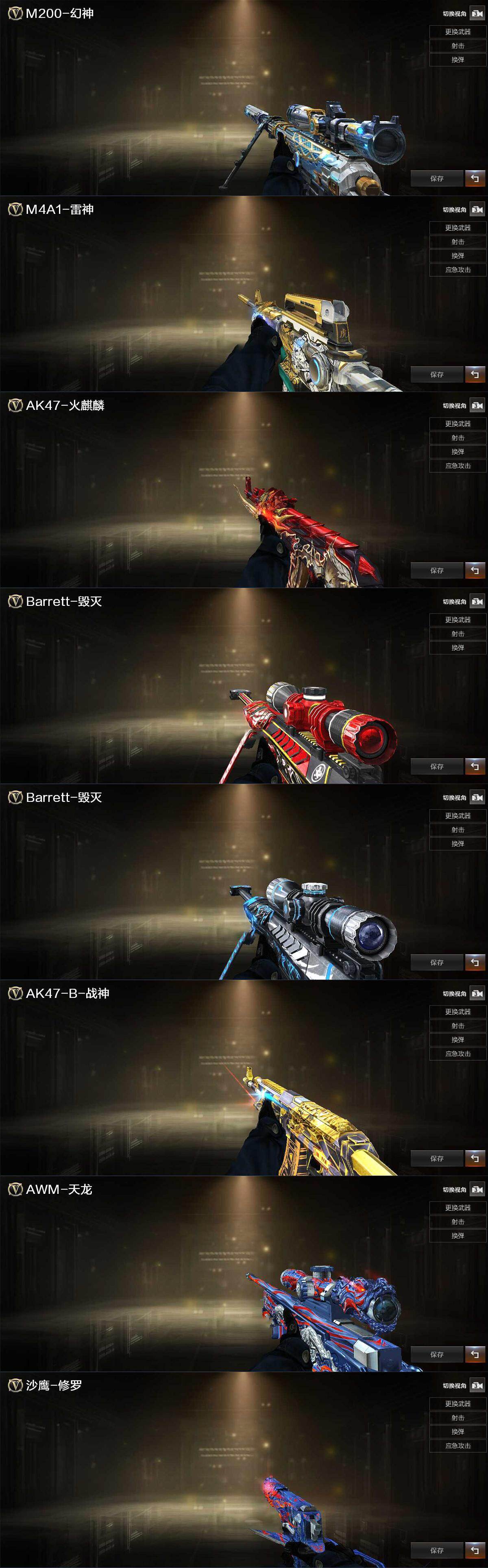 【音效卡】:AK47-火麒麟音效卡,M4A1-雷神音效卡,Barrett-毁灭音效卡