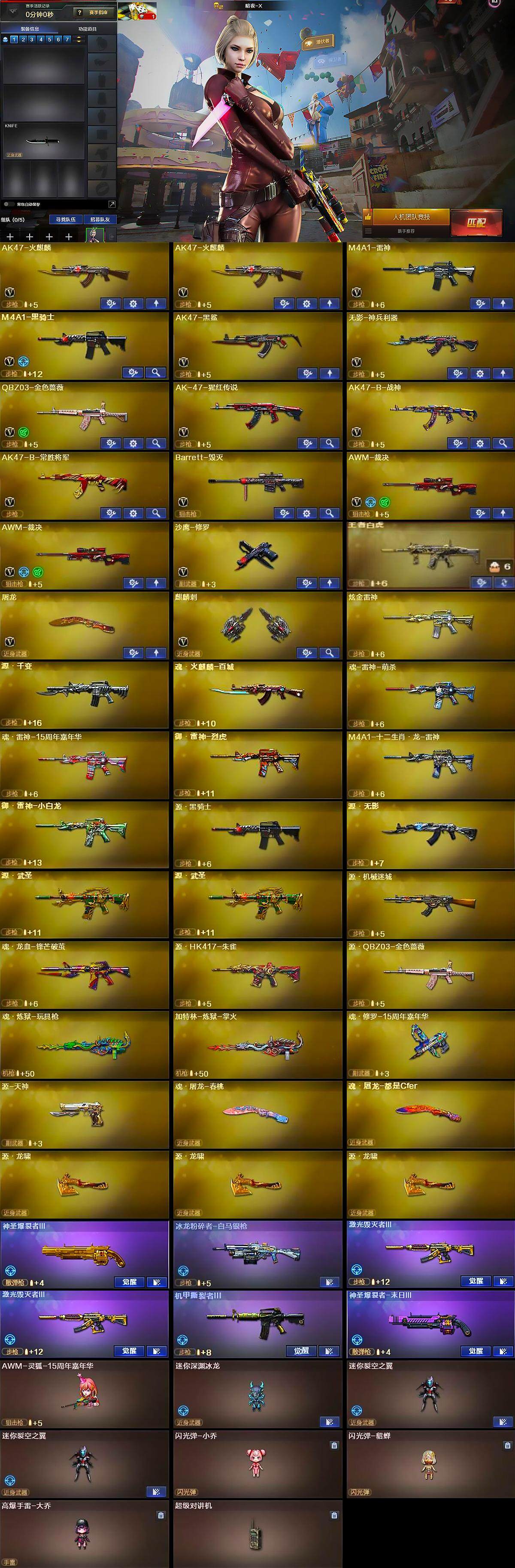 - PX_2113482-f北部/山东2区/48v/m200幻神+星耀皮/98k星神/幻灵套/雷神+烈虎皮/毁灭+星耀皮/屠龙+星耀皮/金色蔷薇-古蛇迷踪/裁决/火麒麟/黑骑士/修罗-古蛇迷踪/影豹(四防)/19皮可排