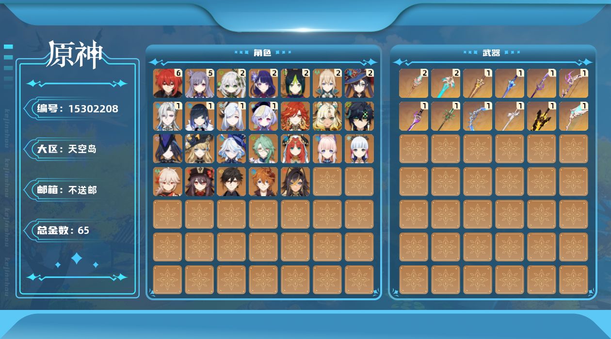 [15302208]60级/65黄/男主/26个五星角色/12个五星武器