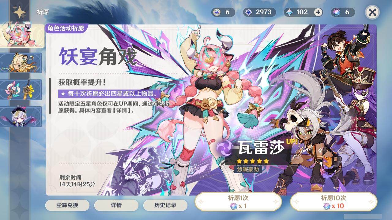 胡桃,钟离,枫原万叶,申鹤,神里凌华,雷电将军,珊瑚宫心海,达达利亚,刻晴,莫娜,迪卢克,琴,七七